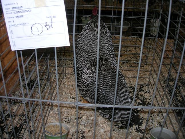 We had two on champion row. A black frizzle Cochin pullet was BB,BV and reserve open Feather Leg. Then our wc chocolate Polish cockerel was BB, BV and reserve open AOCCL. I think there was around 80 AOOCL so I'm pretty happy. Paige was over the moon! So happy with all her awards! Since it was an open and junior show they got ribbons for BOTH. Tons of ribbons. The show was fun and well organized.