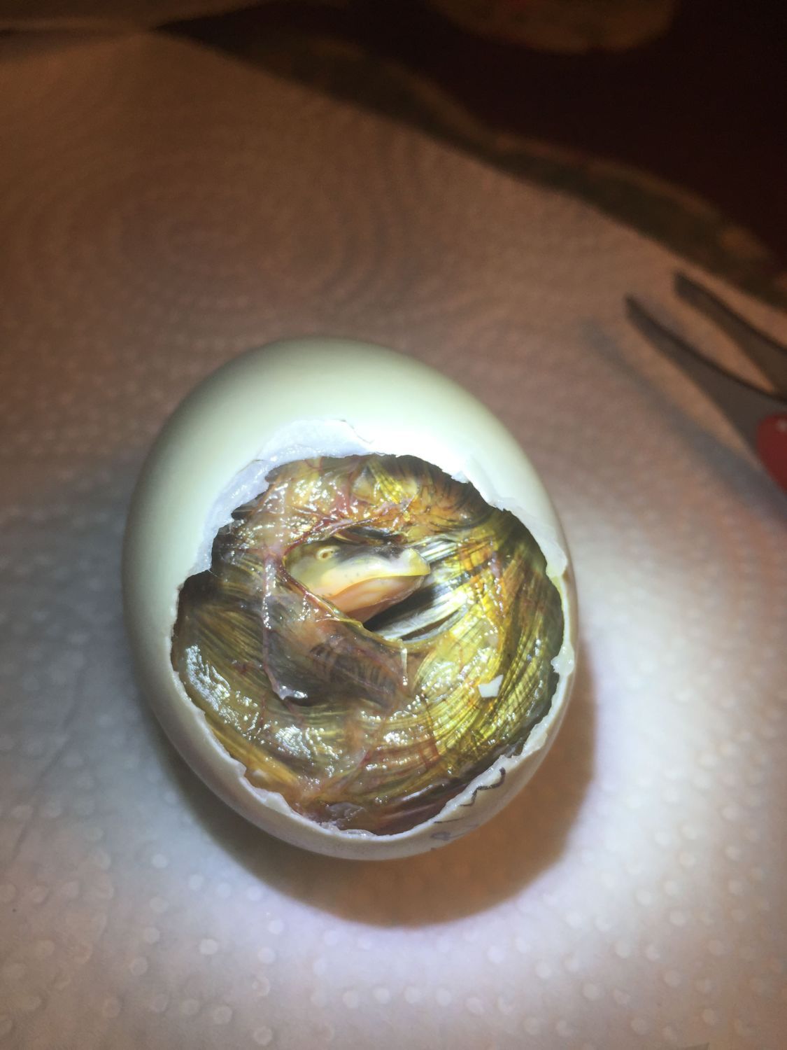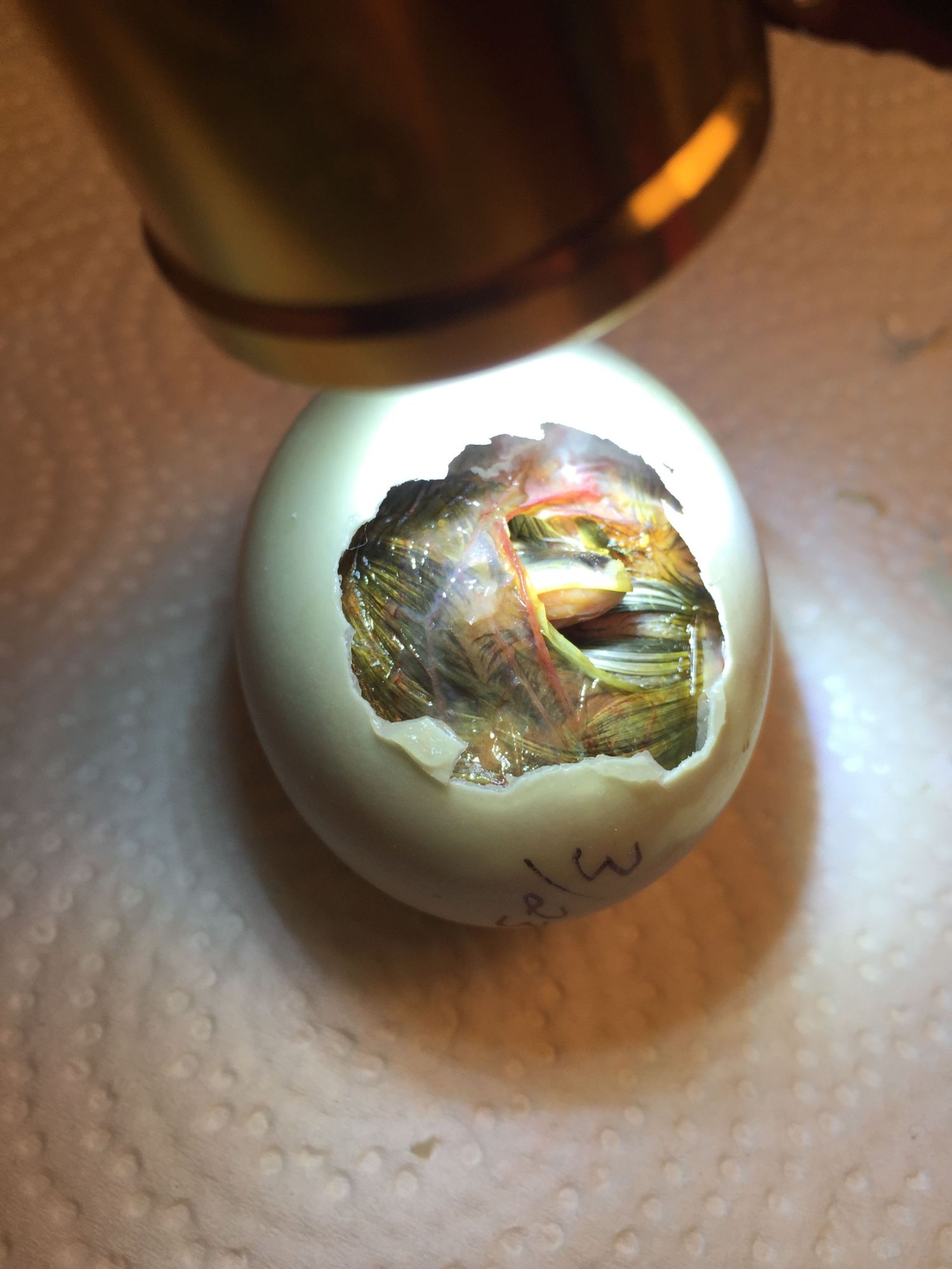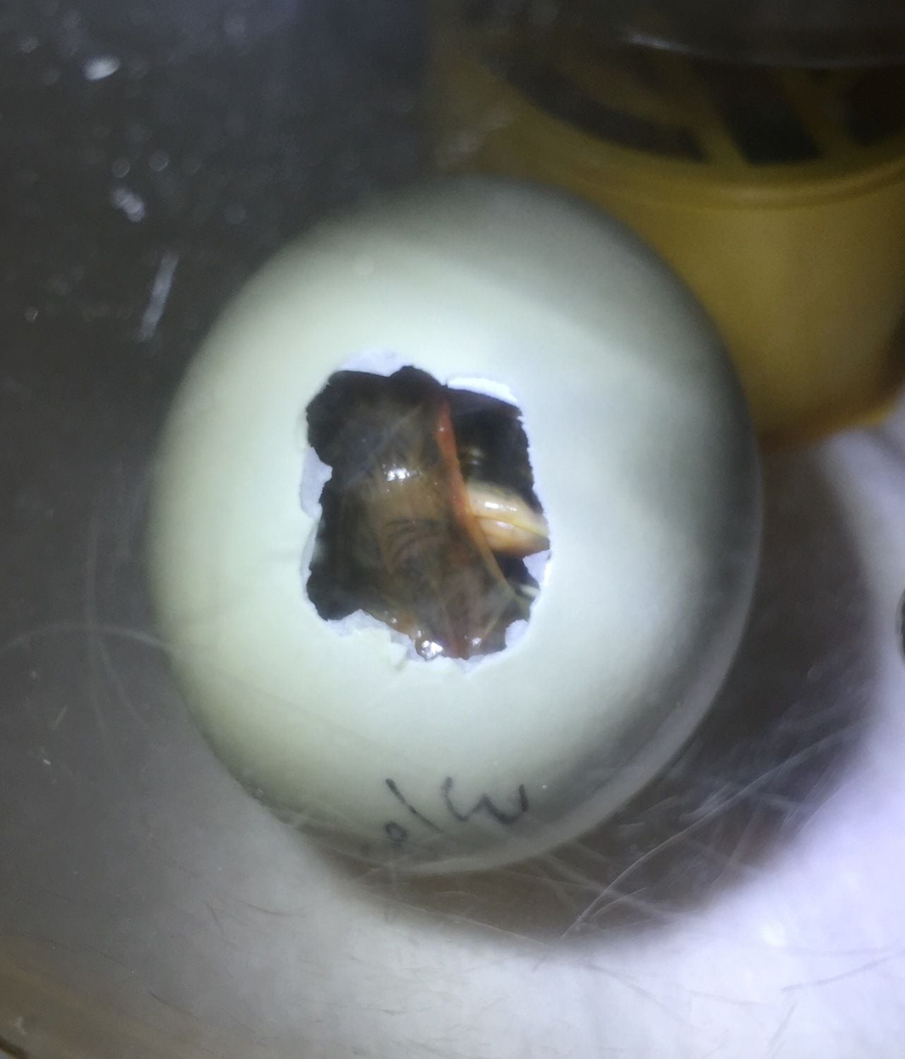 The paper towels seemed to have softened the shells!! The first egg hatched on its own even though we thought we needed to help it!!!