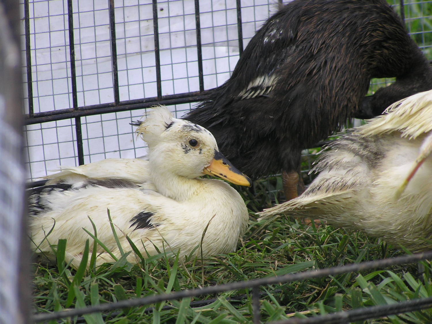 i think i have 7 girls and one boy!!!! how totally awesome is that!!!! the boy is a mean one tho....he's nipping the girls wings and making them bleed and pulling their feathers out....this behavior has won him an all expense paid trip into a cage all by himself where he can hear the girls but can't see or hurt them....he's been in time out all day and as soon as i put him back he nipped at lydia and made her bleed....so he's spending the night alone...when i get home from work i'll try to put them together again....they will be 4 weeks monday....can i put them outside yet??? i think there is just too much duck and not enf tub these days and they are all getting a bit pissy about it....they will have more room in the house we built them and they have a chain link area outside until they get big enf to free range during the day with the other call duck and the blue swedish...what do you think??? too young to go out yet?? we have about the same climate...