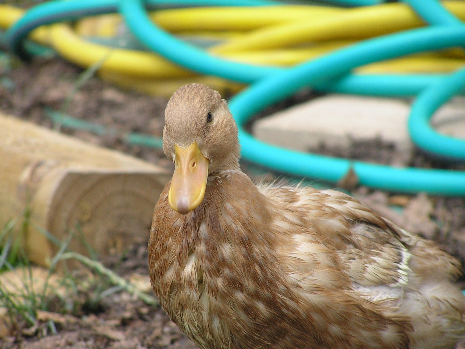 lol, i know im crazy! but after my chloe got eaten im scared to death! i bet they look like tasty little niblets from the sky!.... we got them out, put them in a HUGE house and they have a pretty good sized pen for when we are not out there.... my call drake i got last keeps trying to beat them up.... but they fight back pretty good! they won't swim tho.... i even installed a garden tub up by the porch for them with rock steps to get in and out and they won't go in,.... i know once they start swimming it's ON!