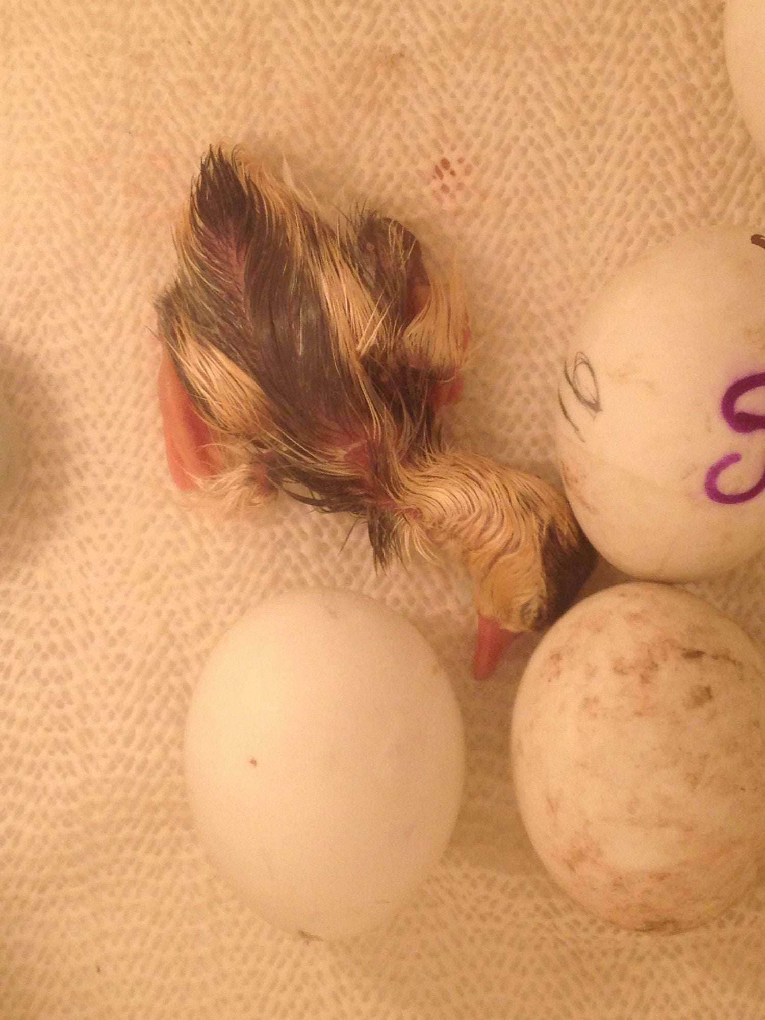 He hatched out yesterday, this is one of Tammy's babies. I'm IN LOVE, I asked my husband for a divorce, now that my true love is here. He is a LONER.. He's brother/sister did not make, never internally pipped and was not fully absorbed..