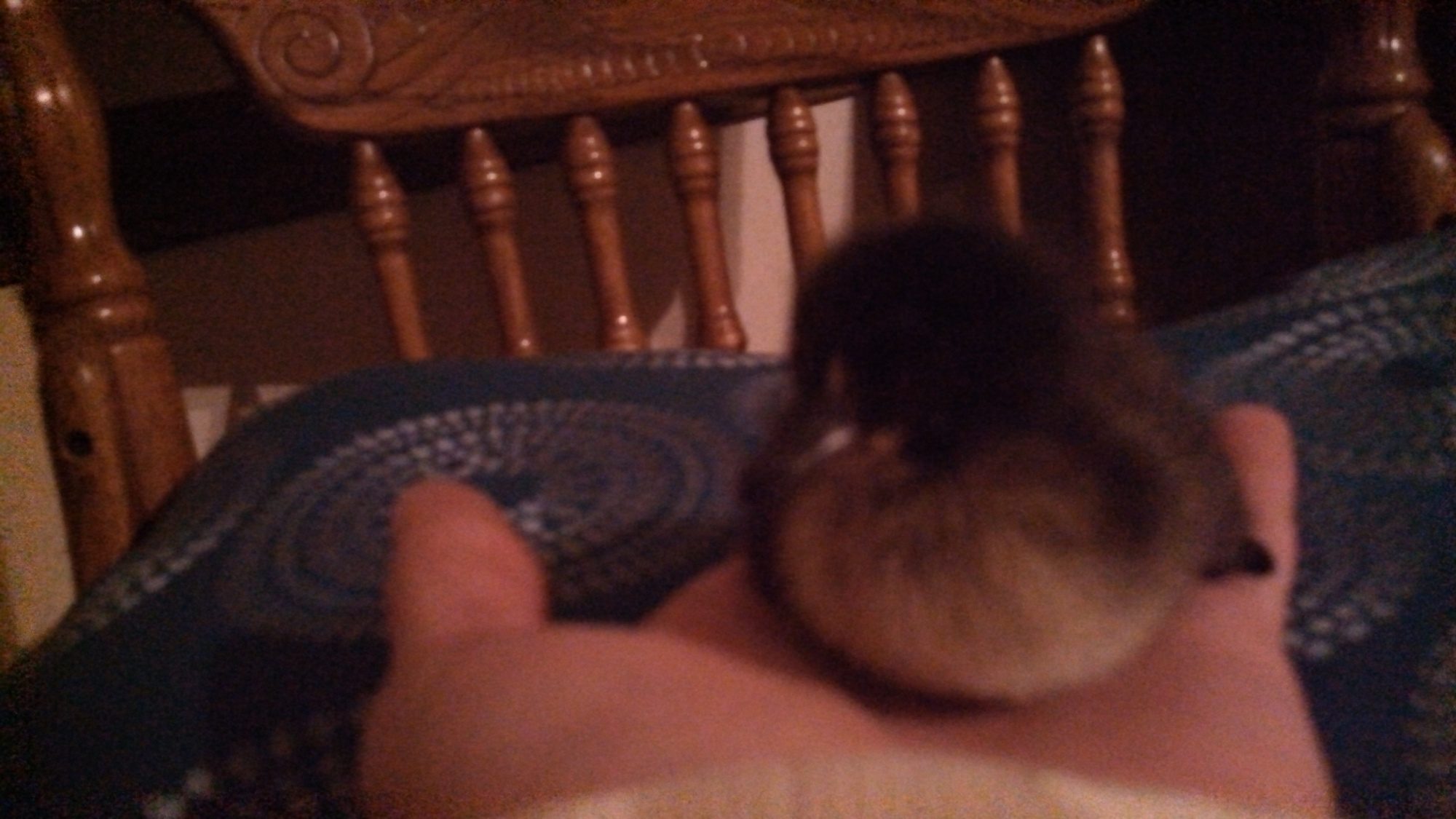 His butt swelling has gone down A LOT. He's still not standing up but when I place him up he wobbles and stays up for a bit. Going to move him into a brooder tonight to give him more room to move.