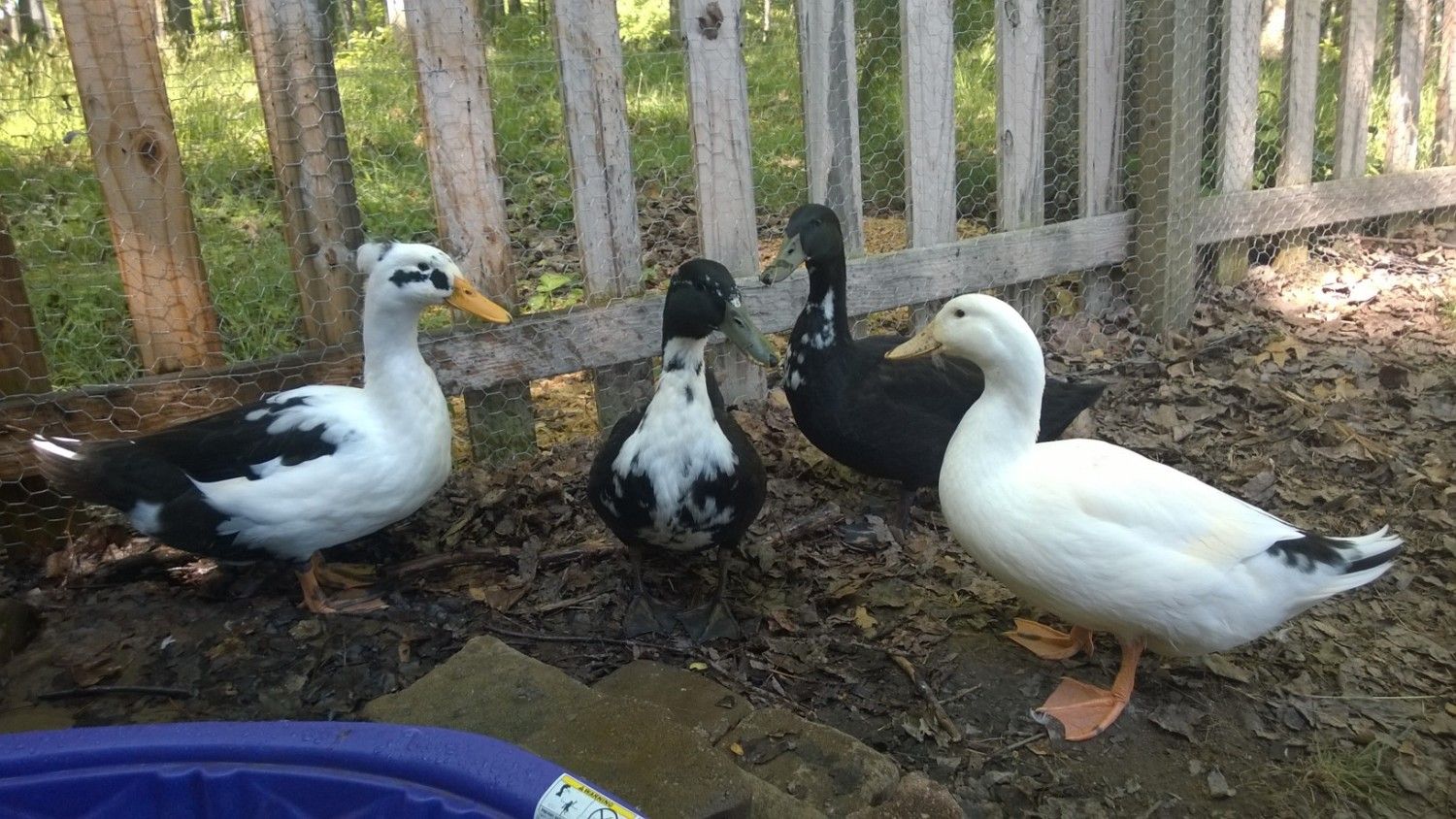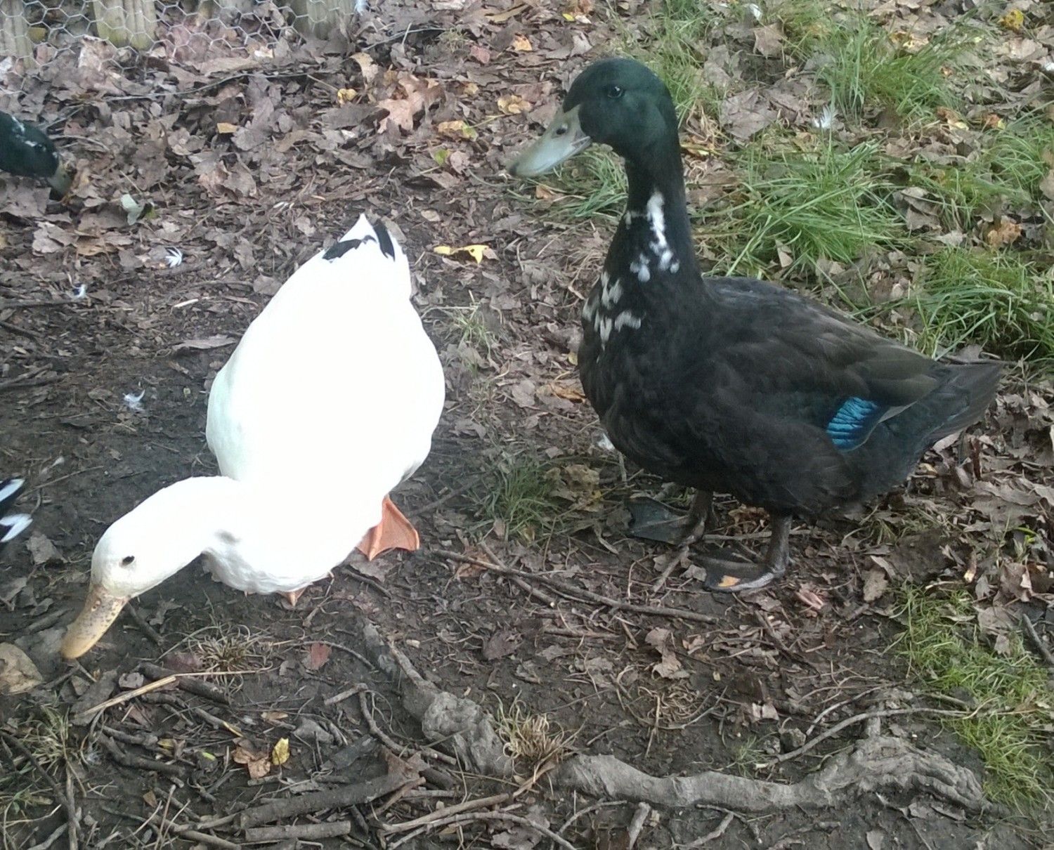 . I cannot believe how beautiful your 4 girls are and I hope they are all girls. Tiggy's wing bar's color absolutely kills me. How did that happen? Is it common in her breed of duckness? I have seen wing bars before in other ducks but her greenish bod with green head and white markings and then the splash of wing bar is exquisite. Now then there's Chibs. Her tail has black. But I thought Pekins were all white. I do like how it breaks up the white though. Opie has more black in her. Chibs' body has such a beautiful smoothness to it. Geez, I could go on forever. I am glad you take lots of pictures. I love your ducks.