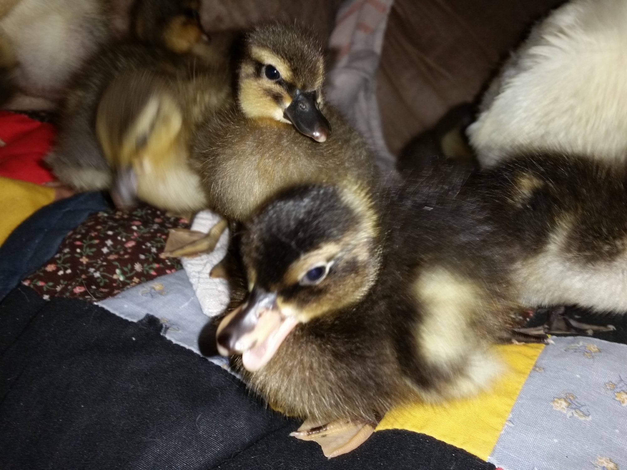Baby Calls. Babies of Lady Grey. EEEEEEEEEEEEEEEEEE. On a patterned quilt they are. They are round.