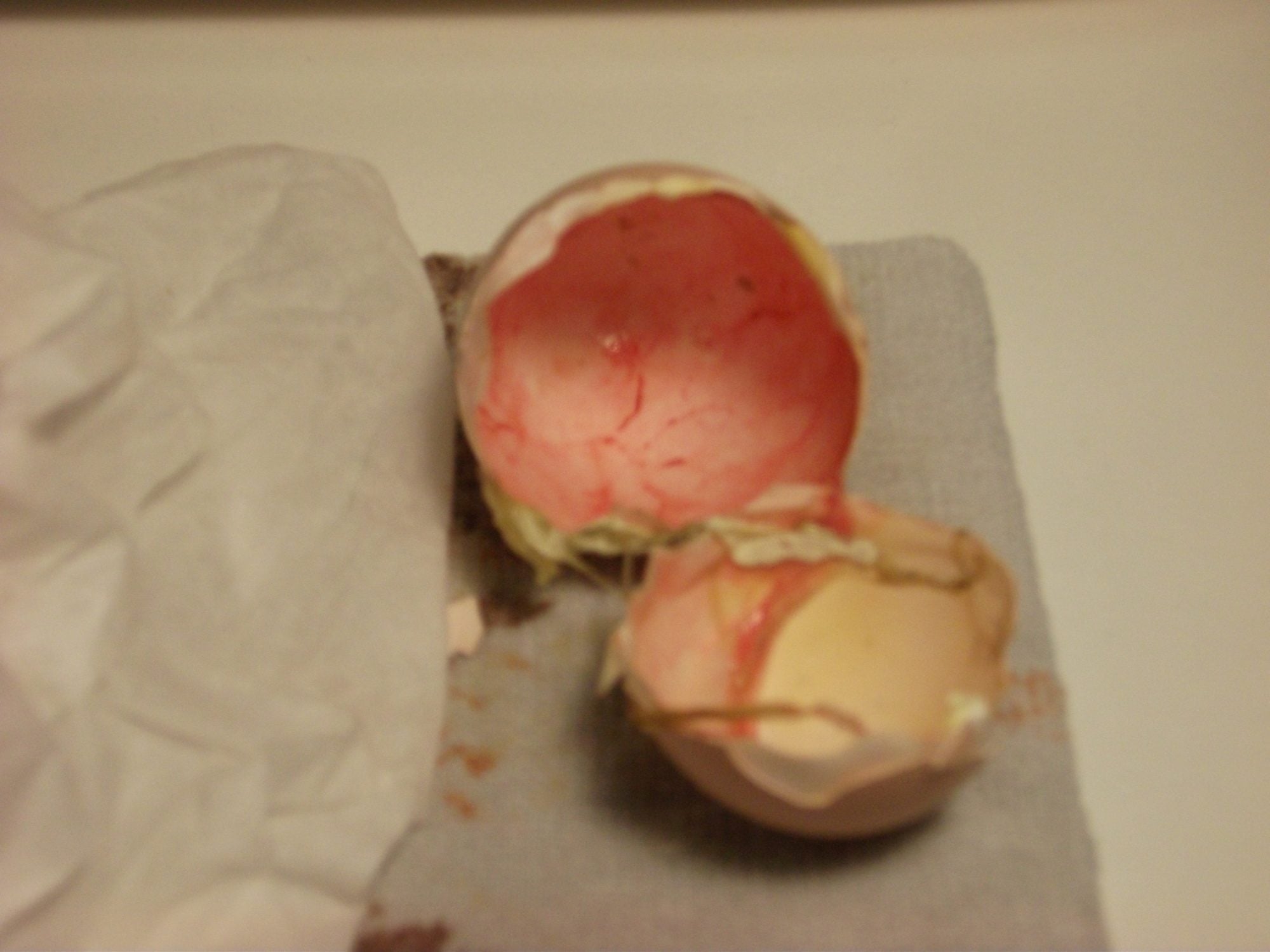 In addition, the eggshell seems quite bloody - none of the other shells looked like this. Could anyone who is more experienced with hatching fill me in on what happened?