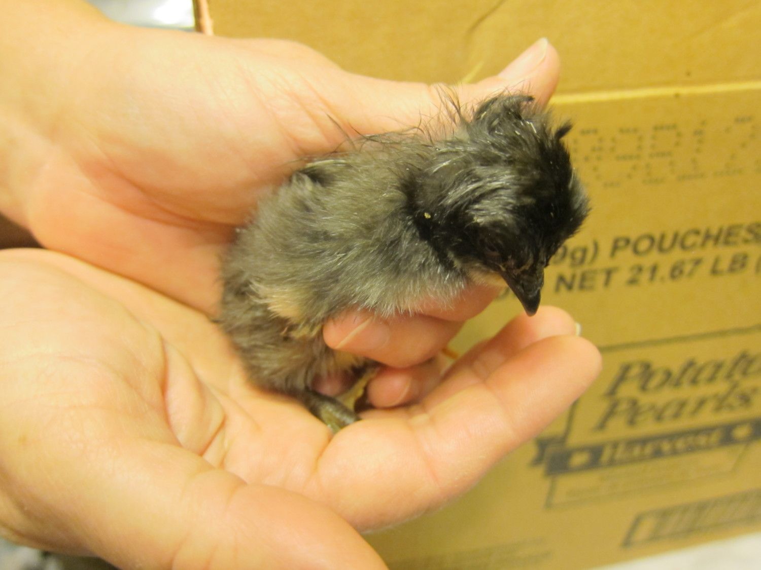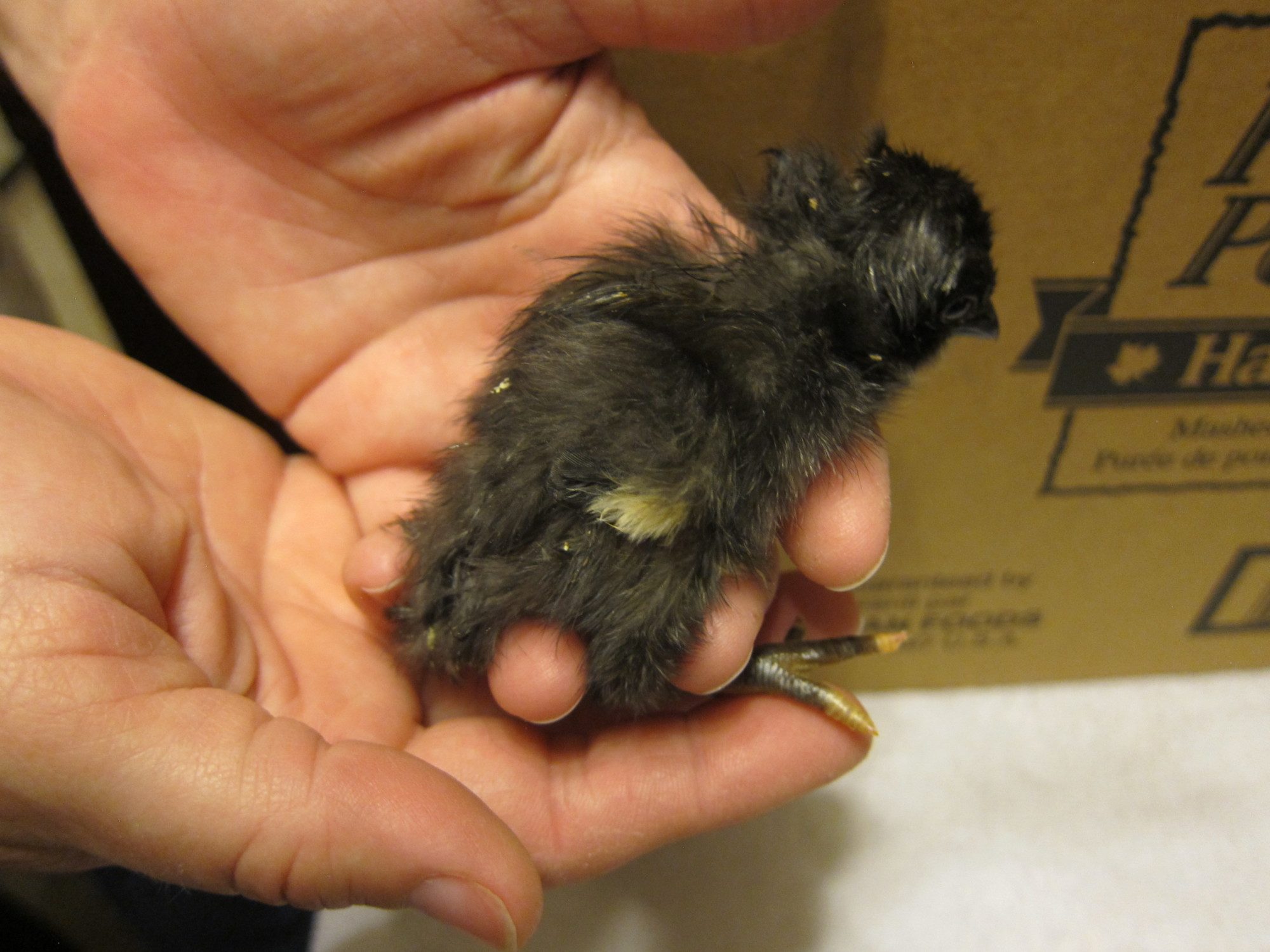 Here's the story: One chick of the Black Penes tried and tried to get out of its shell. I figured it would die after a couple of days while the remaining ones continued to hatch, but it didn’t give up. Any time I’ve ever helped a chick out of a shell after a couple of days of no progress, it has died. Last Thursday was hatching day. Well, the little person in the shell persisted in wanting to live. It originally pipped last Thursday morning and chirped all the way until yesterday (Monday !) with no progress. Monday morning I was sure it was dead, as the egg was completely silent. However, when I tapped on the glass, he let out a huge chirp and continued to yell vigorously for more than an hour. Until then I had just been waiting for chickeedoodle to die so I could dispose of the egg and clean up the incubator. My wife, however, being the very good mother she is, said “just help him out of the shell. He obviously wants to live”. We figured he would die one way or the other--shrink wrapped in the shell or as a result of me trying to help--so I peeled the dried shell and membrane off him. He immediately jumped up and ran around with very little effort. Now, 36 hours later, he is alive and well…thriving in fact. I couldn’t believe it and still don’t. He’s quite scrawny compared to the others that had a couple of days’ head start in eating and drinking (and his down is still well matted--bad hair day), and I have the little guy in a separate brooder box for now while he catches up. He’s eating and drinking and is very active and alert. As a result of this experience, we have named him (or her) Shelly.