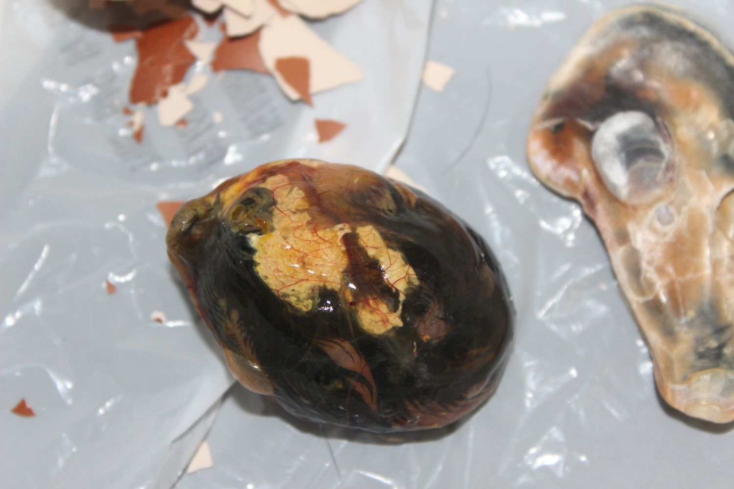 Oh, the 2 that hatched, had very clean & pretty clean egg shells inside.