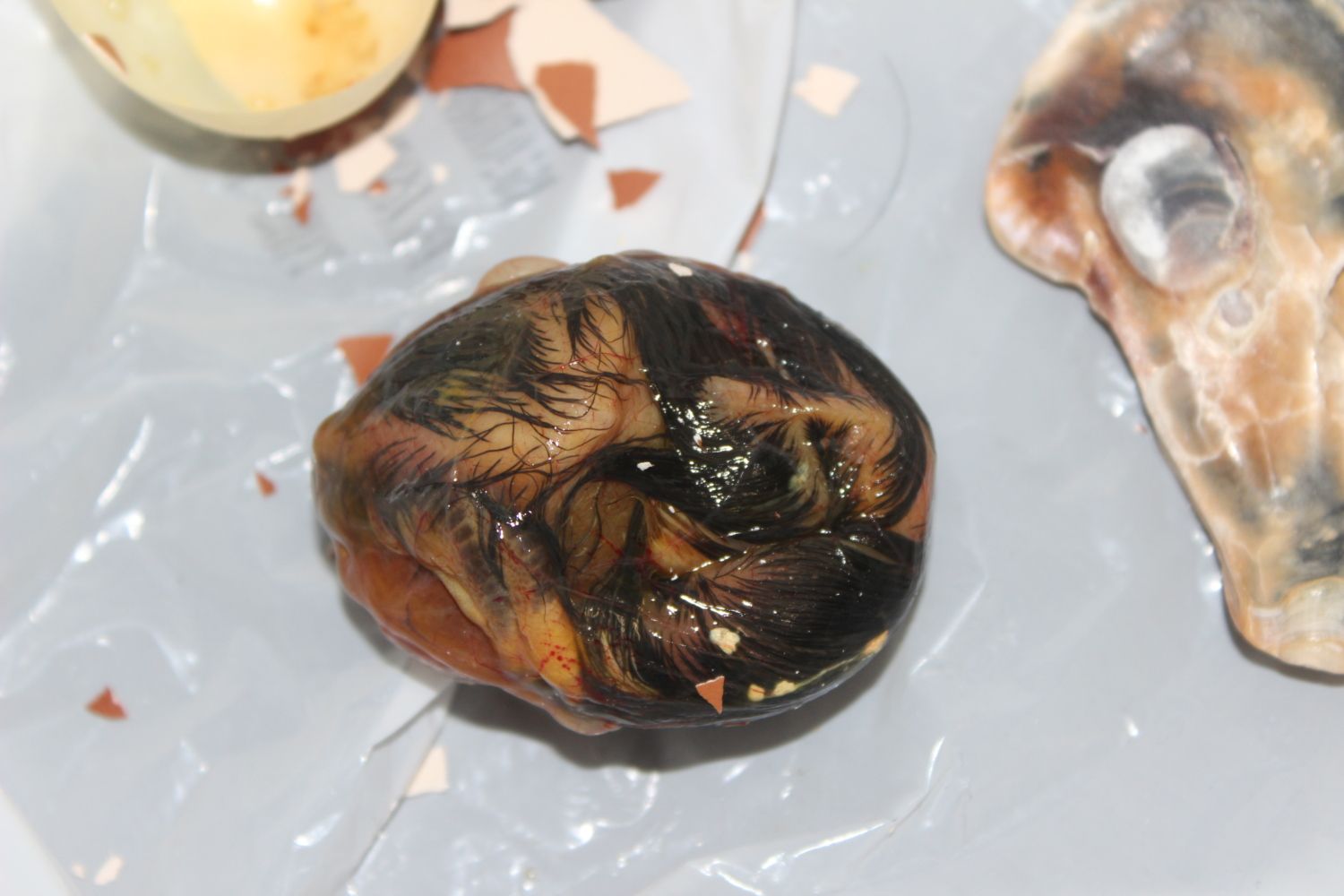 I will do an eggtopsy on them either Tuesday or Wednesday & include photos. In the past the ones that haven't hatched have mostly been well formed or barely formed at all. Not much in between. We'll see what I find this time.Don't toss the eggs out. Do an eggtopsy on them and let us know what is inside the eggs.