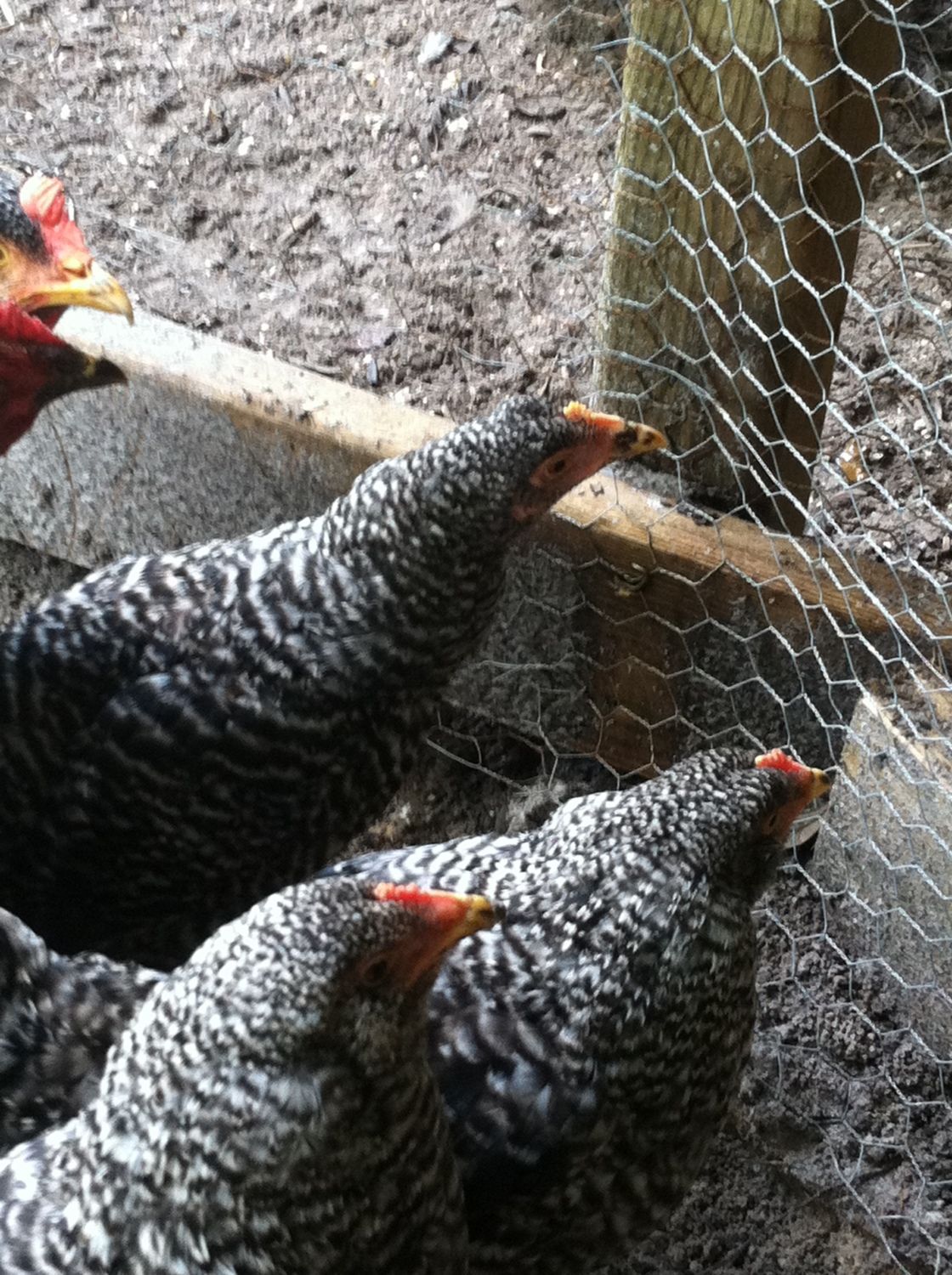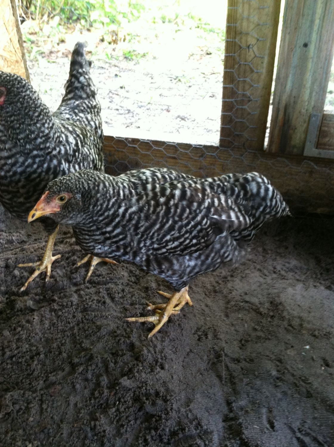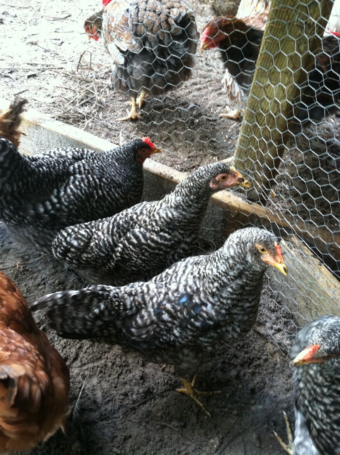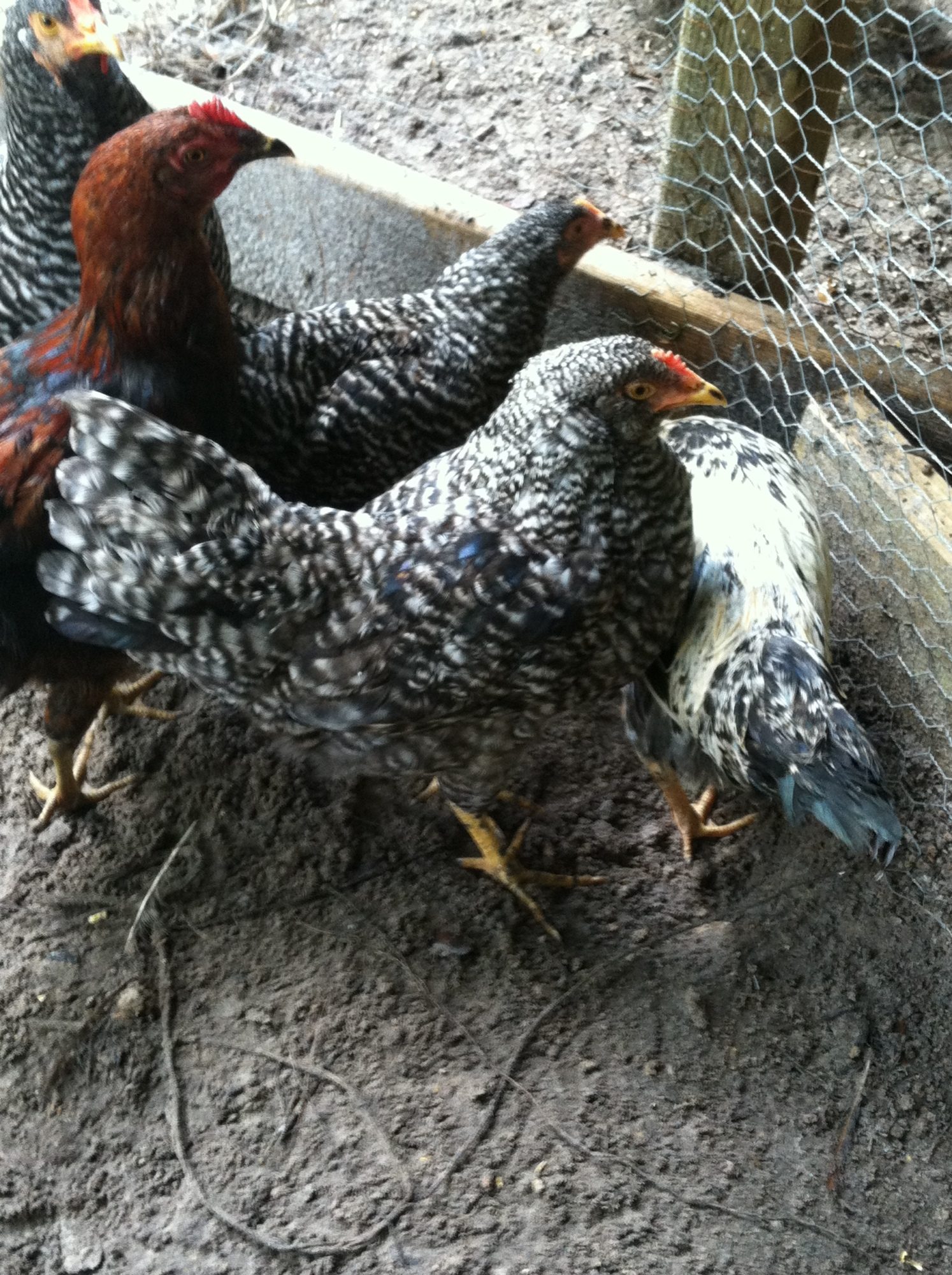 Hi, I have been given 11 chickens from my husband that he bought at an auction. He thought they were barred rock pullets, I was out at the car with my 18 month old, changing a diaper!! The weather has been very rainy and just got to really take a good look at them and really see that most are roosters but very hard to tell. I'm thinking they are barred rock/ameraucana crossed?? Any help on these would be greatly appreciated