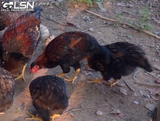 They look like hatchery quality gold laced Wyandottes to me. The blue dilute gene affects the black color. If a bird has one blue dilute gene, all the black will be diluted to blue. If they have two blue dilute genes (splash), then the black will be diluted to white or light grey. If a bird has black feathers, then there is no blue gene present at all.