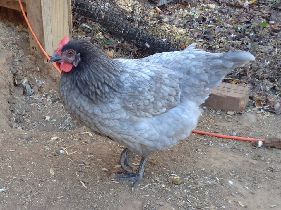She'd have white earlobes, not red if Andalusian.Looks like a Blue Andalusian hen to me. Although I can't tell if she has a little white spot on her cheek or not and can't see her legs. Andalusian would be my first guess.