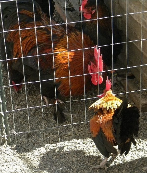 I was trying to not make my original post too long, so I left out that the top roo banty peacefully coexists with 15 other PR RIR roos in the flock as well, including a Partridge Cochin roo. He's the largest bird, who is at the bottom of the pecking order- go figure.