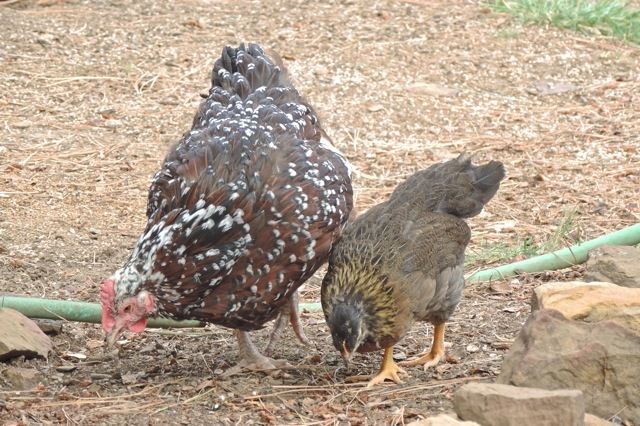My Sussex Linda with her Cream Legbar chick Ladybug, time lapse. Ladybug is now seven weeks and Linda is still nurturing her.