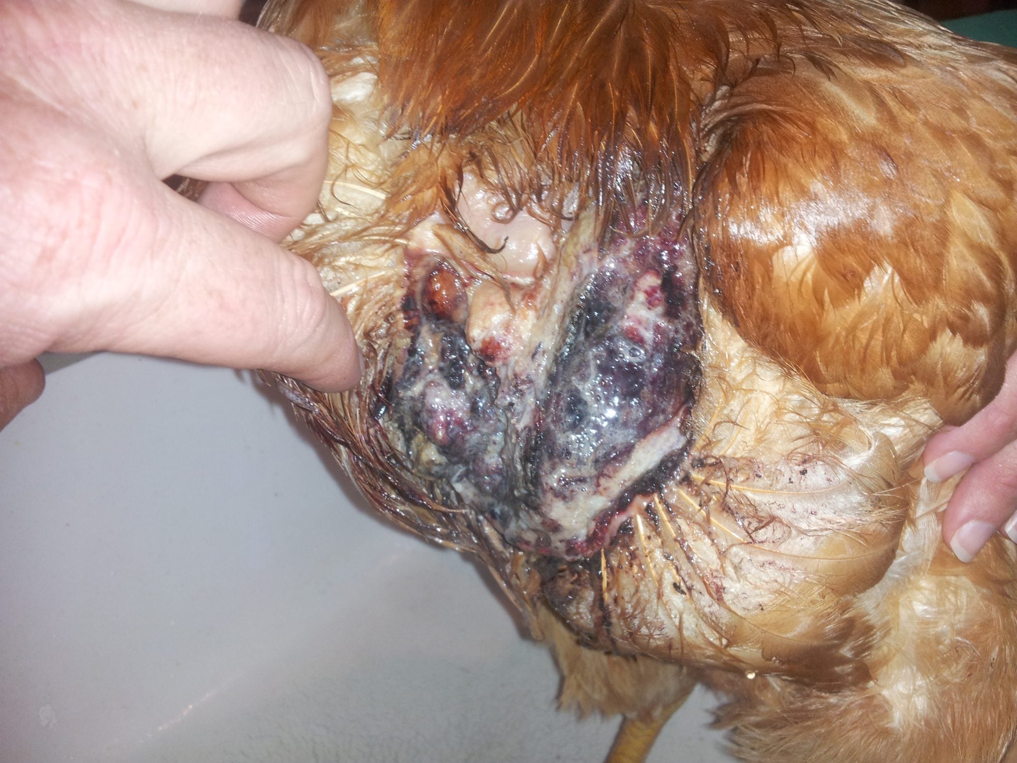 I agree with the above post on injectable antibiotics,i would get her them soon as possible. Clean this several times a day,you can use a saline solution or soap/water,but if wound appears infected keep using diluted peroxide or salt water flush.