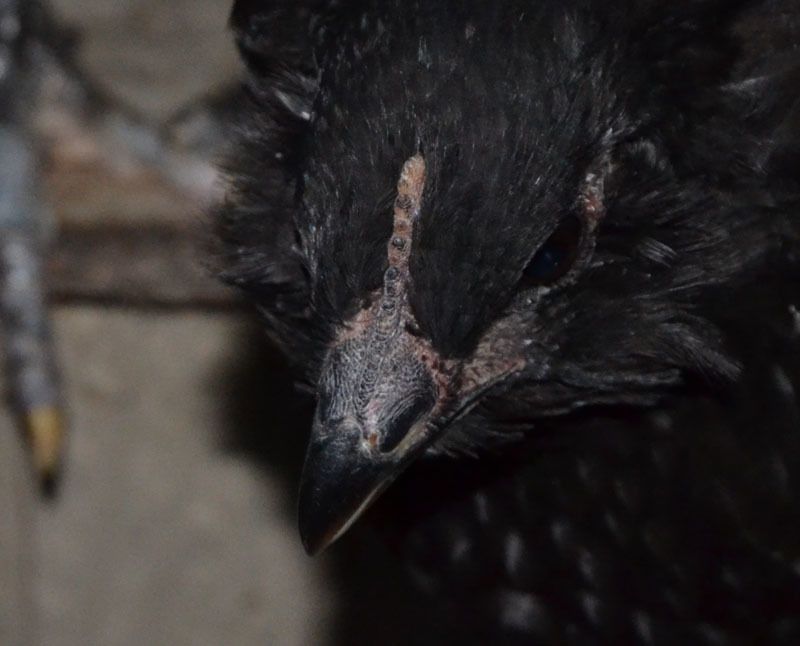 Two months ago I has a chick that was attacked by her mother as soon as she hatched. Below's a picture of Frankenchick's injuries on one side of her head a couple days after the attack. When I rescued her from her mother, she had blood coming out of her nostrils along with pretty much being scalped. With some intensive nursing, she survived.