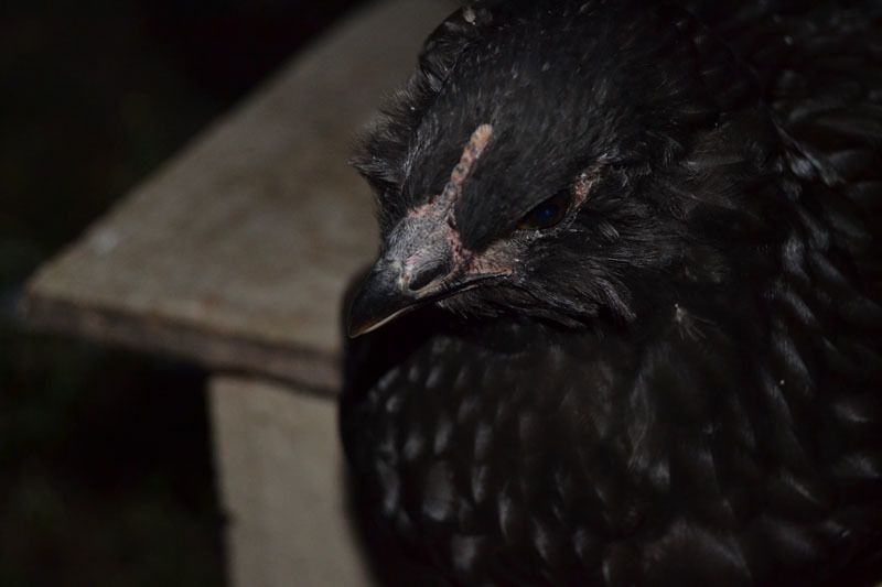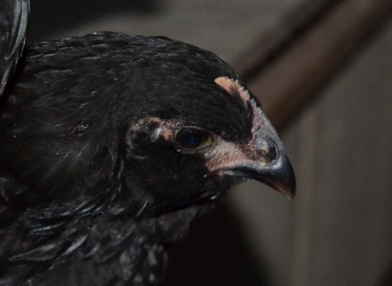 Three weeks ago or so I started noticing that Frank's beak was not straight. She's a Ameraucana/Marans cross, and of the seven hatched from her mother's eggs, she's the only one without a straight beak. I've never seen crossbeak in person, so I don't know if it's a minor or slow developing case of that, or if this is something related to the attack she suffered right after hatching. Her whole skull is slightly curved to one side, really. Her beak curve hasn't gotten worse since I noticed, and it just seems really strange for it not to be related to the injury. I guess the important question is whether or not it's likely to get much worse.