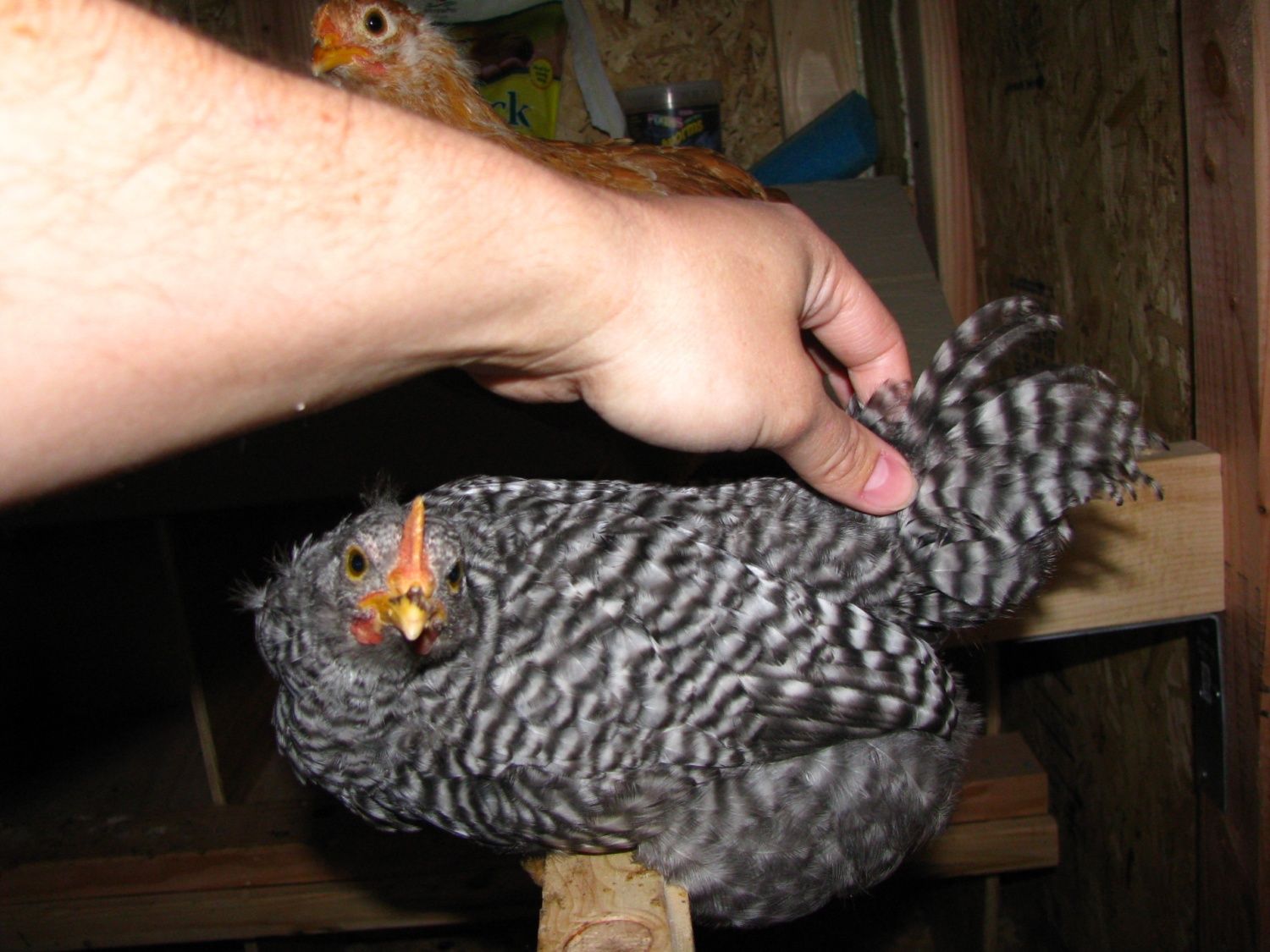 So I guess we will be having fertilized eggs after all when they get bigger! I just hope he isn't aggressive, we have two toddlers around the house, they always have hand fed the chicks since they were little so I hope that helps with the chickens dispositions. I have heard that the BRs are docile and friendly, does that include the Roos too?