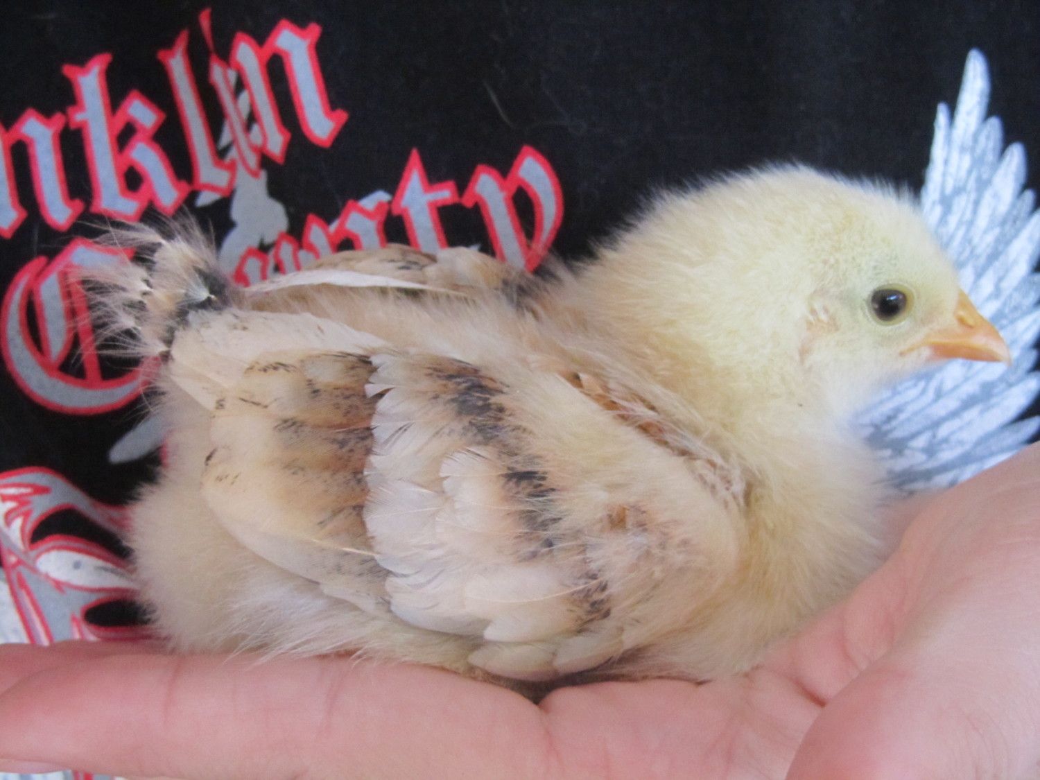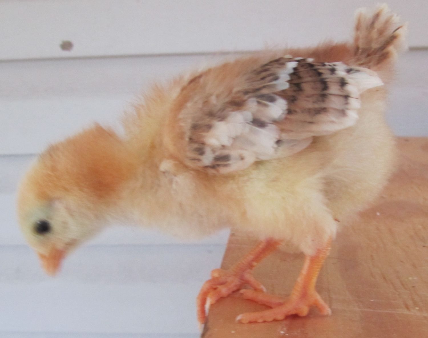 This Barred Rock mutt was given to us when right after it had hatched. Can you tell if it is pullet or cock?