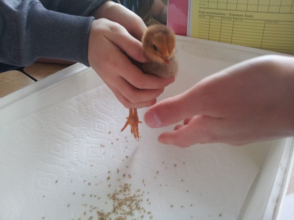 My brooder chicks .. they are now two weeks and very different. I've been taking them to school (three times now) where my grade four and fives are studying them and their habitat and they are building model coups :) Lots of fun!