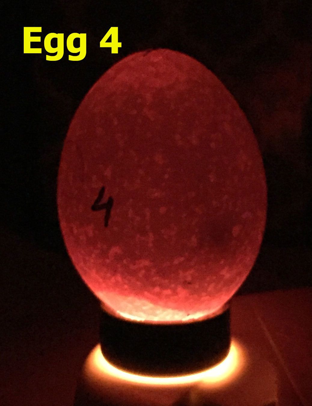 Egg 4: Really hard to see with this one, but I think I see a dark spot.