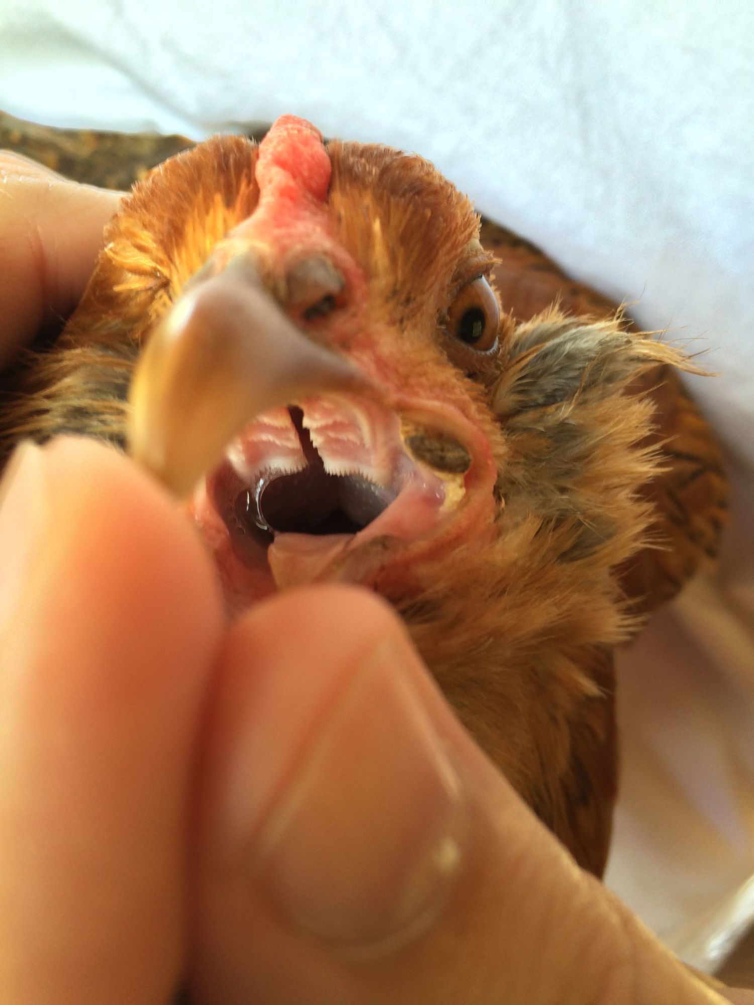 I just noticed this afternoon that one of my EE hens has a swollen cheek and it looks like she may have something in the corner of her beak or then again it could be an infection of some kind. Im not sure where to begin and was hoping for some help/suggestions on where to start. There is no foul smell She is acting normal, the lump on her cheek doesnt feel hot to the touch, and she was very eager for some meal worms. When we picked her up and began to examine more closely the lump does feel hard but doesnt roll around like a cyst would ( if that makes sense). We tried to pull on it a little but since we arent sure if it is actually something impacted or an infection of some kind we didn't pull on it too much. Any suggestions would be greatly appreciated!!!
