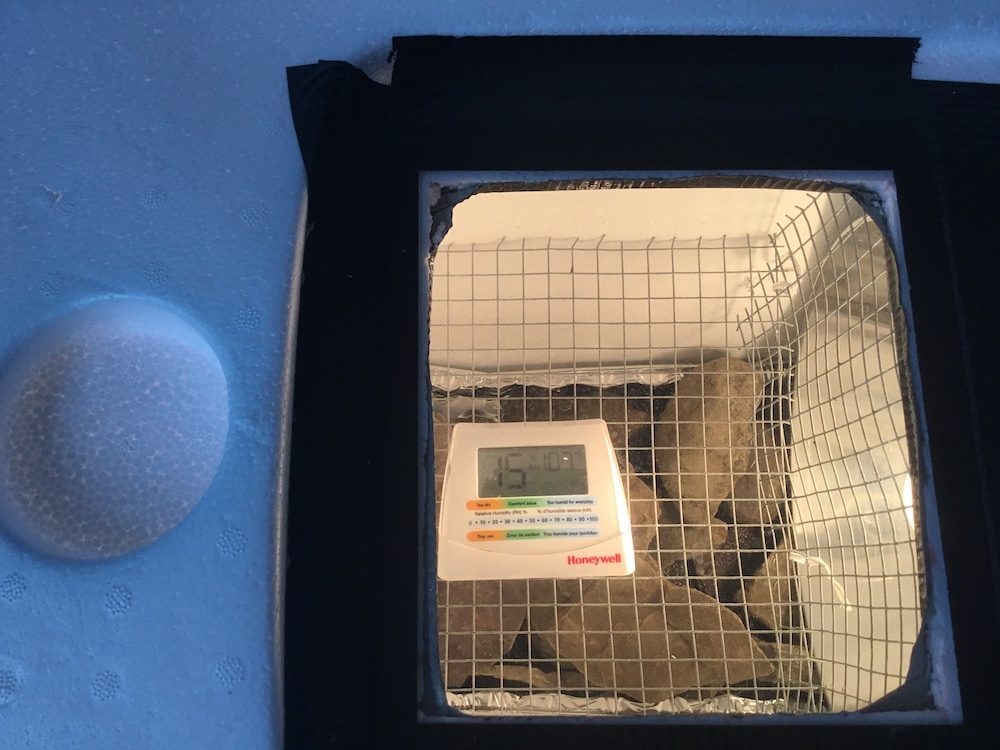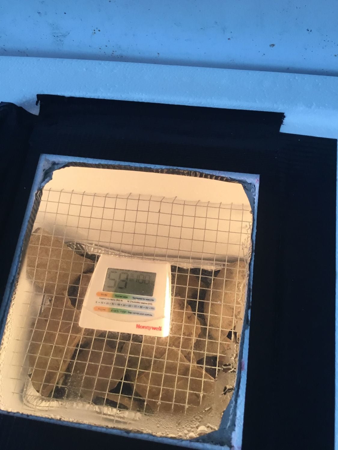 I built my own DIY incubator out of a styrofoam cooler, lightbulb, fan, hardware cloth, rocks, and tin pan to hold water. I've been trying lots of different things: different wattage of lightbulbs, more water, more rocks, fewer rocks, etc and I can't seem to raise the humidity beyond 15%. I'll be using the dry-hatch method for incubation, so I'm most concerned about getting that humidity up for lock-down. This is my first time hatching eggs, so any advice on my incubator is appreciated! I also wanted to go DIY to save costs before I buy an incubator so I'm patient with figuring out temps and humidity.