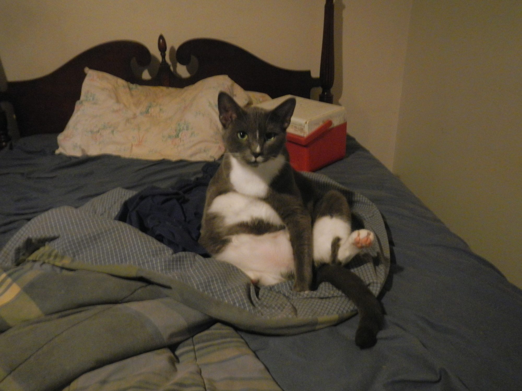 Finally got a picture of miss gracie. Very petite real lady, fereral kitten from back yard that dogs got. Her eyes weren't open and she was about frozen, I kept her in my pocket till she warmed up, then she was bottle fed. Lives in my bedroom gets very mad when other cat touches me, she will bite and scratch at me. I have a couple outside cats, lived in house for years, went out every day. One day they wouldn't come back in. They sit at front door every morning waiting for food. I had a bunch more that also went out.Some neighbors trapped all them one night.