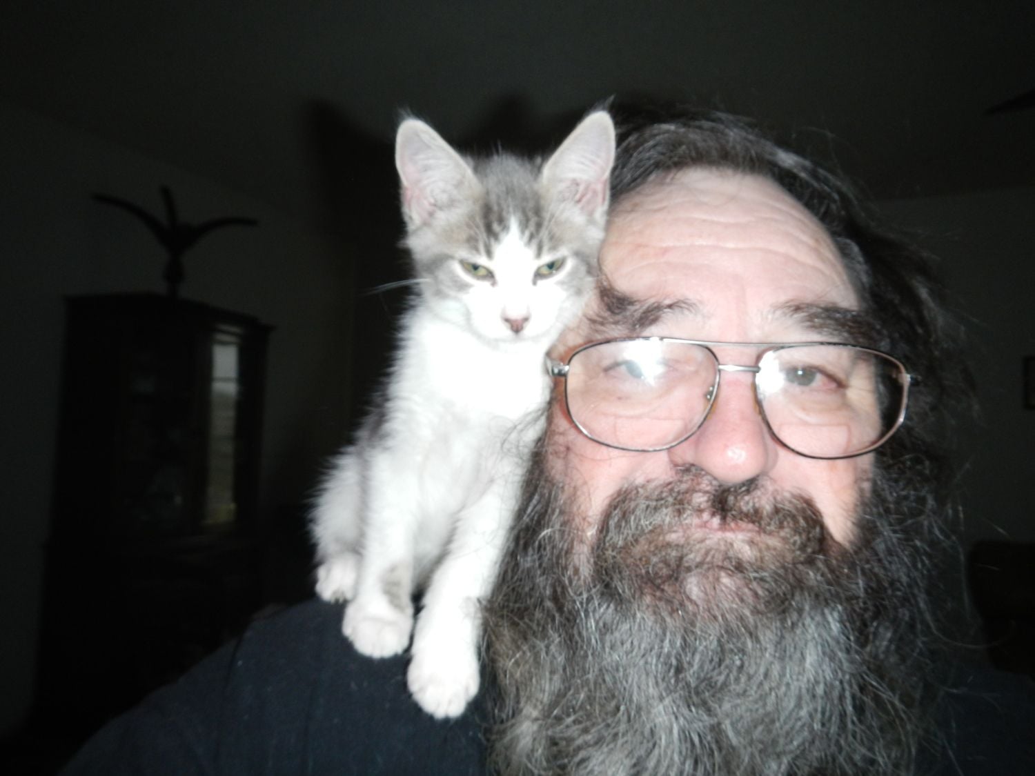smokey,found in a field alone and a few weeks old boy was she hungary,cat # 1 was very jealous will put my girl on next,havingtrouble.All my animals rescued,most bottle fed,they have gotten me tru some bad times