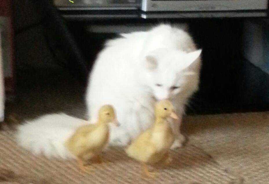 I have two in the house here and 1 at my mamaws that has leukemia :(. my long-haired white cat thinks shes the surrogate mother off all the animals that get brought in the house.Her name is Precious aka pusspuss
