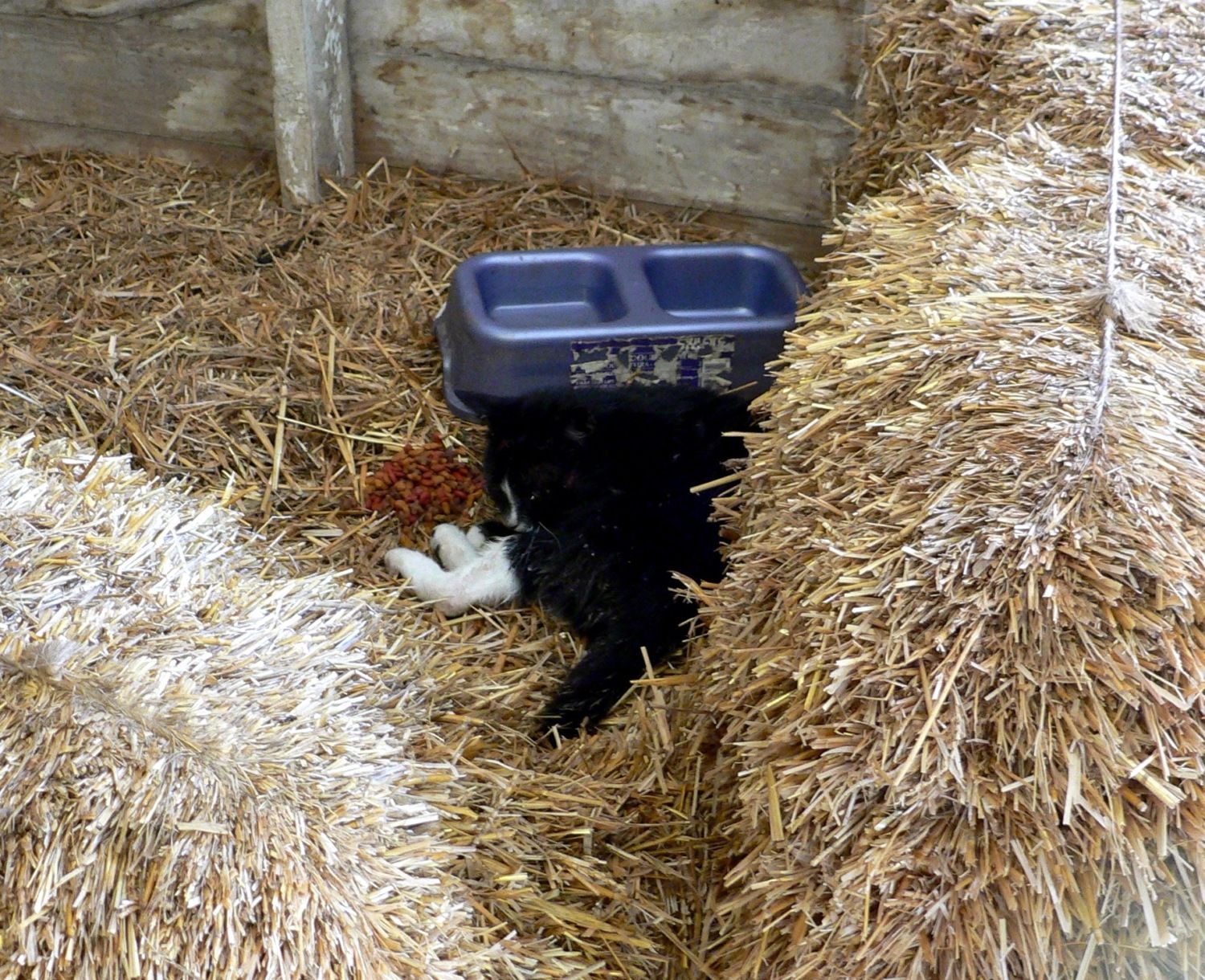 This is Tabby, Scardy, Tiger and Pygmy feeding with the stray, Black Cat