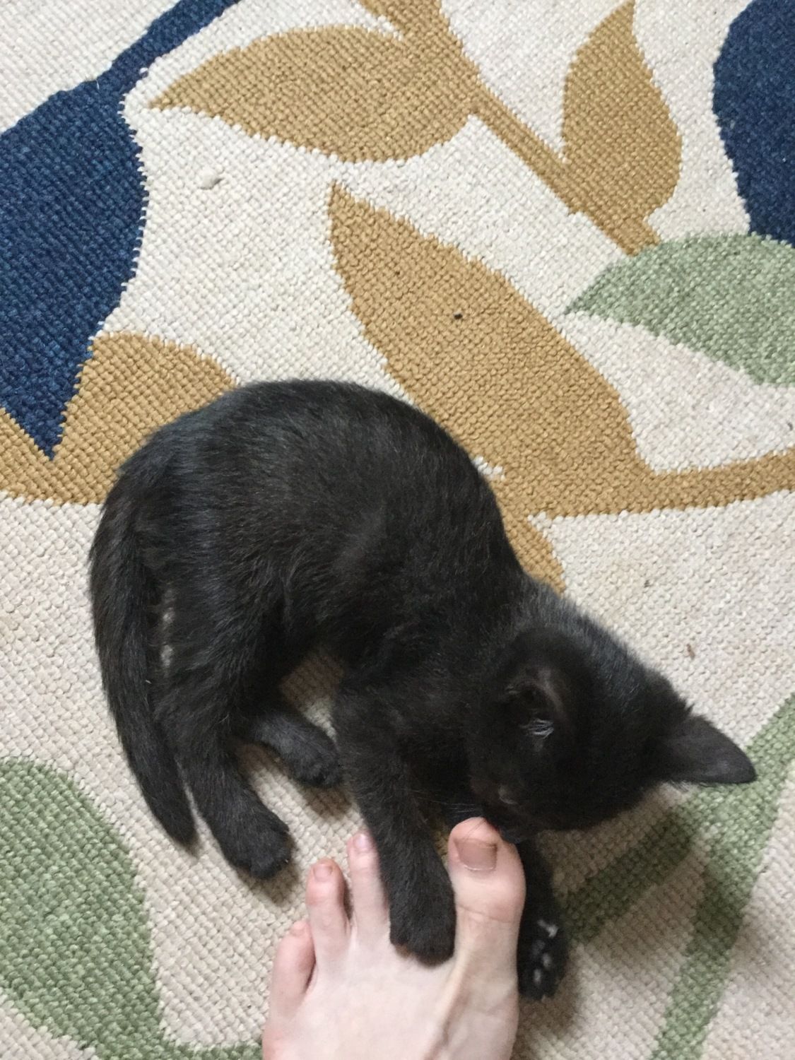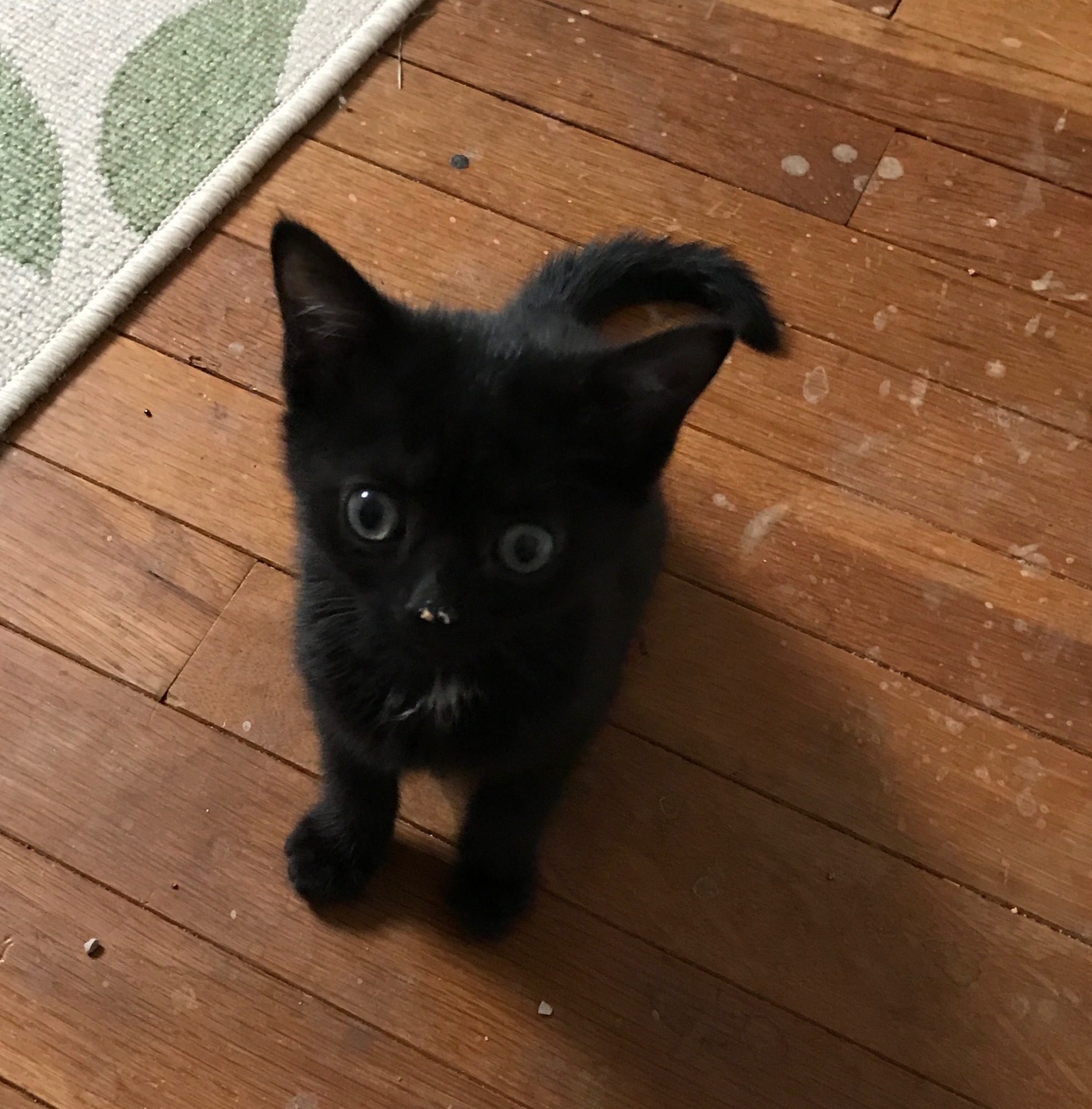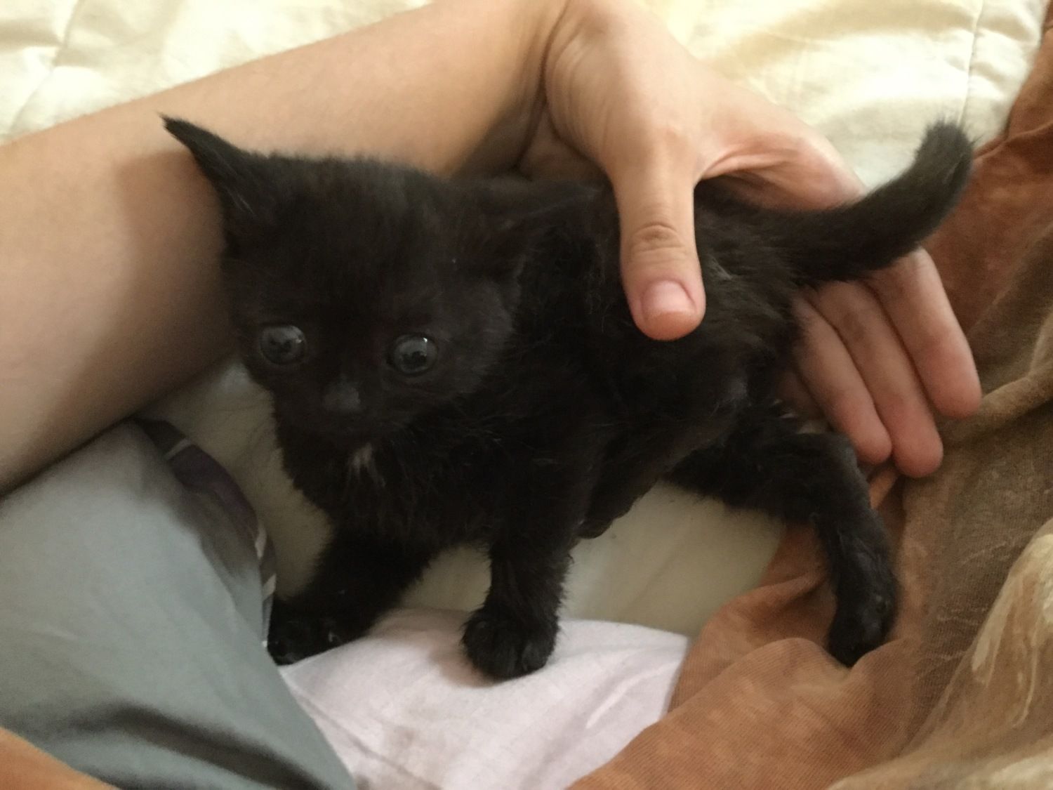 I've got some awesome news! Nocturne, one of my foster kitties, is going to be officially adopted today!!!!! She is a special needs girl, she has hydrocephalus, or spinal fluid on her brain, which makes her a little different then the others. But she is one of the sweetest things I know. She just now cuddled up next to me and is chilling while her sisters play near-by. Here she is, 10 weeks old and adorable! She's even got some food on her noes. I was there the moment she was born at the shelter, helping her because she was premature and weak. Two of her siblings passed away. She was so tiny, always prone to wandering. Even at just a couple days of age we had to put a belt through the cage door so she couldn't crawl through it and get lost. At a week of age she was the size of a day old, as were her siblings, and she came to our home to be fostered. Lyla, her mother, Twilight and Oziana, her sister's, and little Nox herself. She grew. She was the darkest of the kittens, with a lighter back-half and darker front-half. She needed to be stimulated to use the bathroom because her mother was having trouble doing that herself. She started to crawl around. They slept most of the time, but Nocturne was always either hiding in the back or crawling out to the door of the walk-in-closet where she would have to be picked up and put back in her nest. Here she is, staring a corner with her sisters. Her head started to get very round and large and her eyes bulged. But she was learning how to eat. She was moved up into my room at about 4 weeks of age. Her mother was always sweet and nurturing, giving them plenty of milk and love. But she would cry (okay, scream really, really loud) for attention at the door for cuddles even at a young age, toddling her way to the door and crying to be held. She loved tummy tickles. But still played with her sisters too. Always sweet, very limp when picked up as if her mother were holding her. Easily startled at first, but now just very cuddly. She is 11 weeks old, vaccinated, and ready for her new life. : )