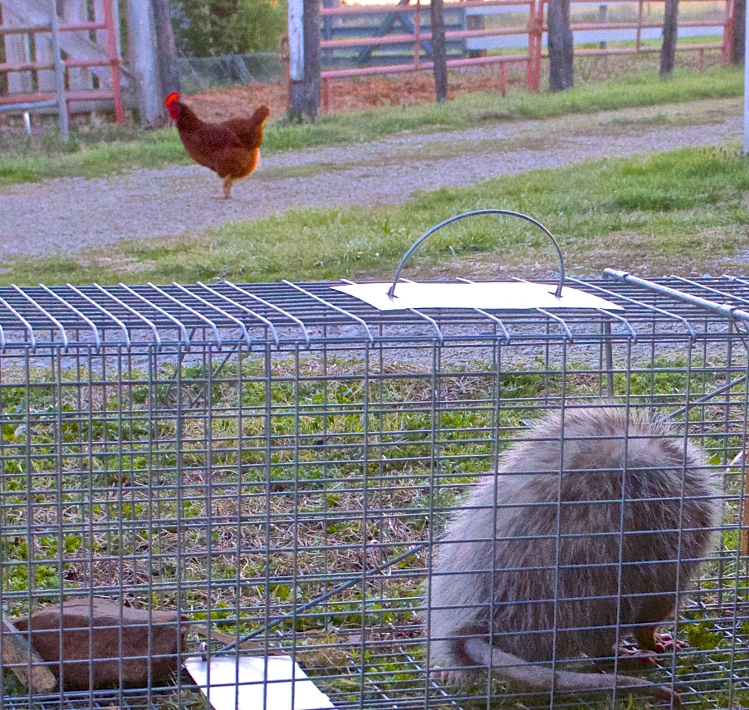 I converted a 12x12 chain link dog pen in to a coop for my silkies (it has fencing covering it as well), and last night woke up to a very upset rooster and ran outside to find the possum with the entire hind end of the rooster (only the feathers) in its mouth. After I startled it and we stared at each other for 5 minutes or so, it went right through the chain link! I didn't realize they could fit through those holes. How would I go about reinforcing it? One of my hens just hatched our first ever chicks last night as well, so I am worried about them. I didn't think to take my gun with me or I would have shot it last night.