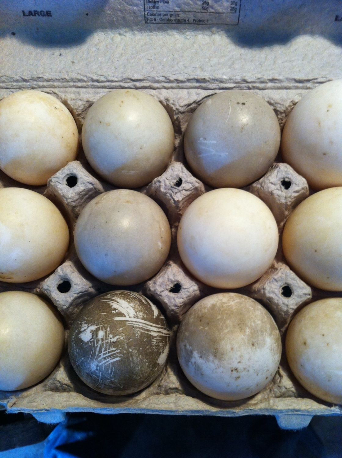 Well, I went out to let everyone out this a.m. and this is what I found in the Cayuga coop (I provided the carton)