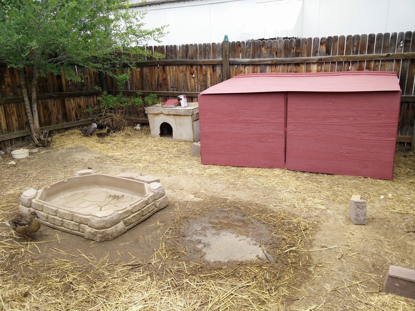 The little duck house is gone now, that was for when we only had 2 ducks and needed an emergency shelter for them. Now we have six so we have the bigger, more solid house.