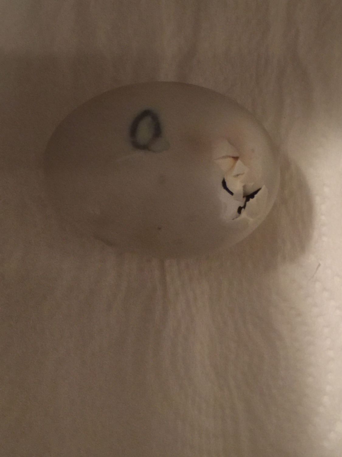 Sad occurrence tonightbwith one of our other eggs. It was developing nicely and had a great air sac expected to hatch on the 22nd. Tonight I candles the remaining eggs and the egg sac was no longer present and the entire inside of the egg is cloudy. I've had plenty of early deaths but this one sucks cause the chick is still moving in the egg. I know it won't make it without the sac but I can't bring myself to get rid of the egg yet. Happier news, the egg we are waiting to hatch is still working on zipping its shell.