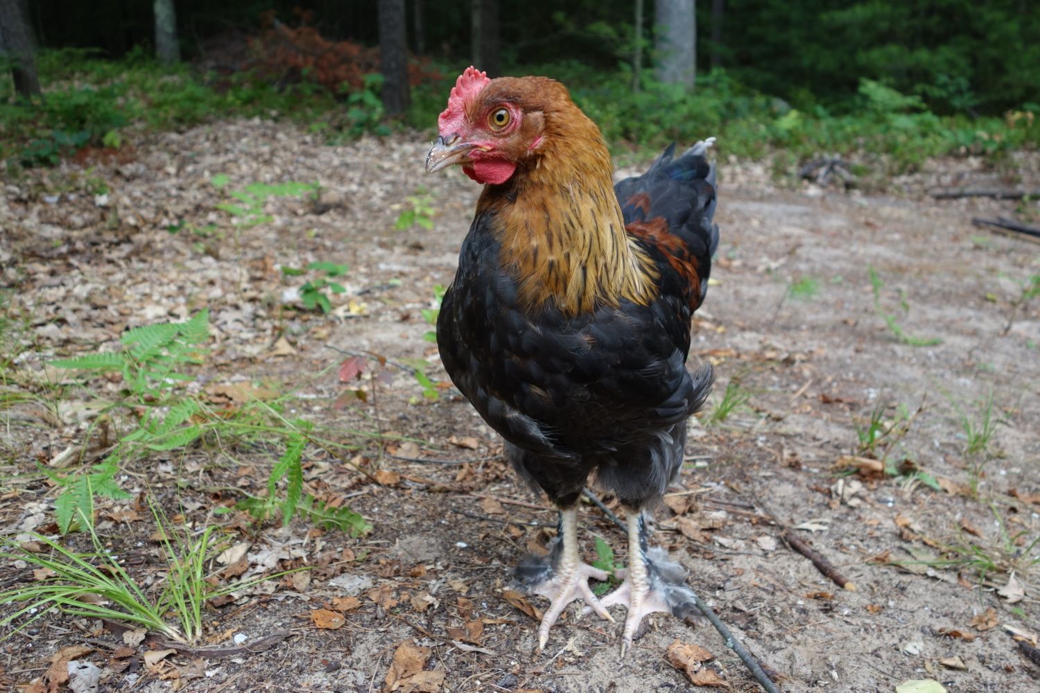 Anyway, how my story ended up was that I ended up with 4 chicks who made it out of 10. 6 chicks died from mysterious reasons, and the 4 remaining were never well, they always had drippy noses or were wheezing. The 4 I had left, 3 were definitely roosters, and the Ameraucana did look like a true pullet, she was blue/grey and had beautiful slate legs. However, she got eaten by something out in the woods. She was always the slowest of the 4 we had left. So, that left me with 3 roosters (Some sort of Marans, Barred Rock, and Speckled Sussex.) I tried and tried to get Cedar Creek to take them back, or give me a reimbursement but no response what so ever. I gave two away and decided to keep the S.Sussex, but unfortunately he met his demise by a woodland creature too. I can only hope he gave the creature the case of chronic diarrhea he suffered from.
