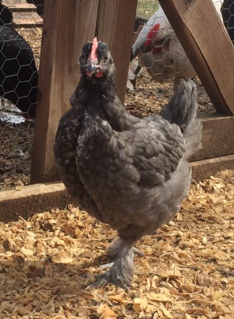 Next are 2 available (same breed): Blue Marans MIX cockerels. They're 7 weeks old with gorgeous blue coloring and feathered legs. They are 50% Marans and as you can see, have black leg shanks and toes, and some white coloration on the chests. These cockerels were from a fertility test hatch from my Splash Copper Marans rooster (he's my avatar pic) crossed with a black sex-link hen. Splash Copper father is a very nice quality, big rooster. A perfect gentleman, neither hen nor human aggressive. Their mother hen is the sweetest hen in our flock. This gives these handsome young fellows a good chance to have nice personalities as well. These boys are fully feathered, using a roost, and acclimated to the outdoors.