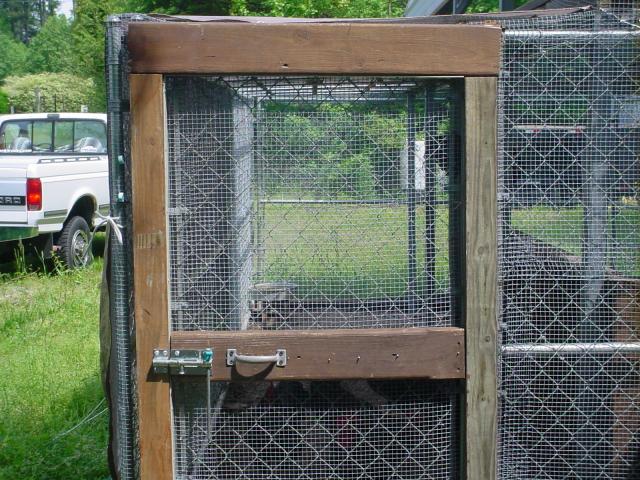 We spent today hanging hardware cloth (36" high, and we buried it 12" in front of the run), but we've run into a problem with the door to the run. We're using two chain link dog runs to keep the girls in, and I'm not really sure of a way to secure the door and allow us access. (We actually have two doors, but we've basically disabled one with hardware cloth).