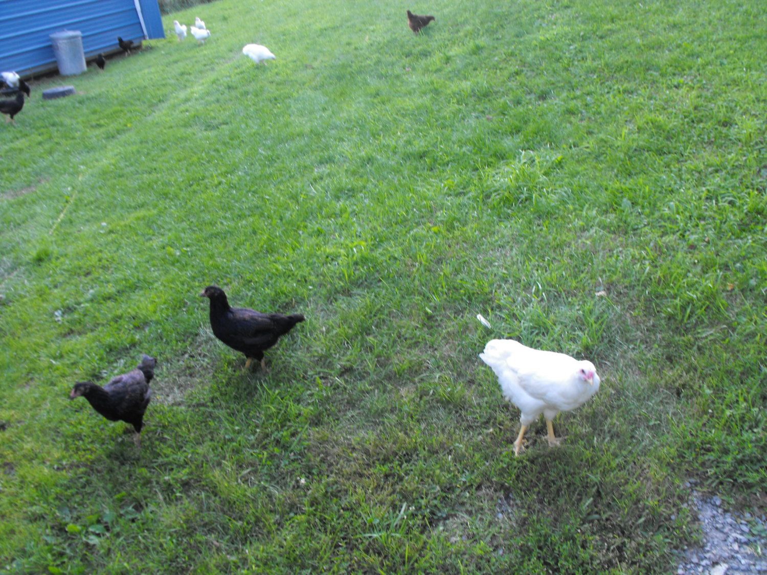 EDIT:to add one more pic. These birds are in a grow-out pasture of three acres with two sheds, soon to be three, for the youngsters. They are placed near my work shop so I can keep an eye on them. They love the pasture!![]()