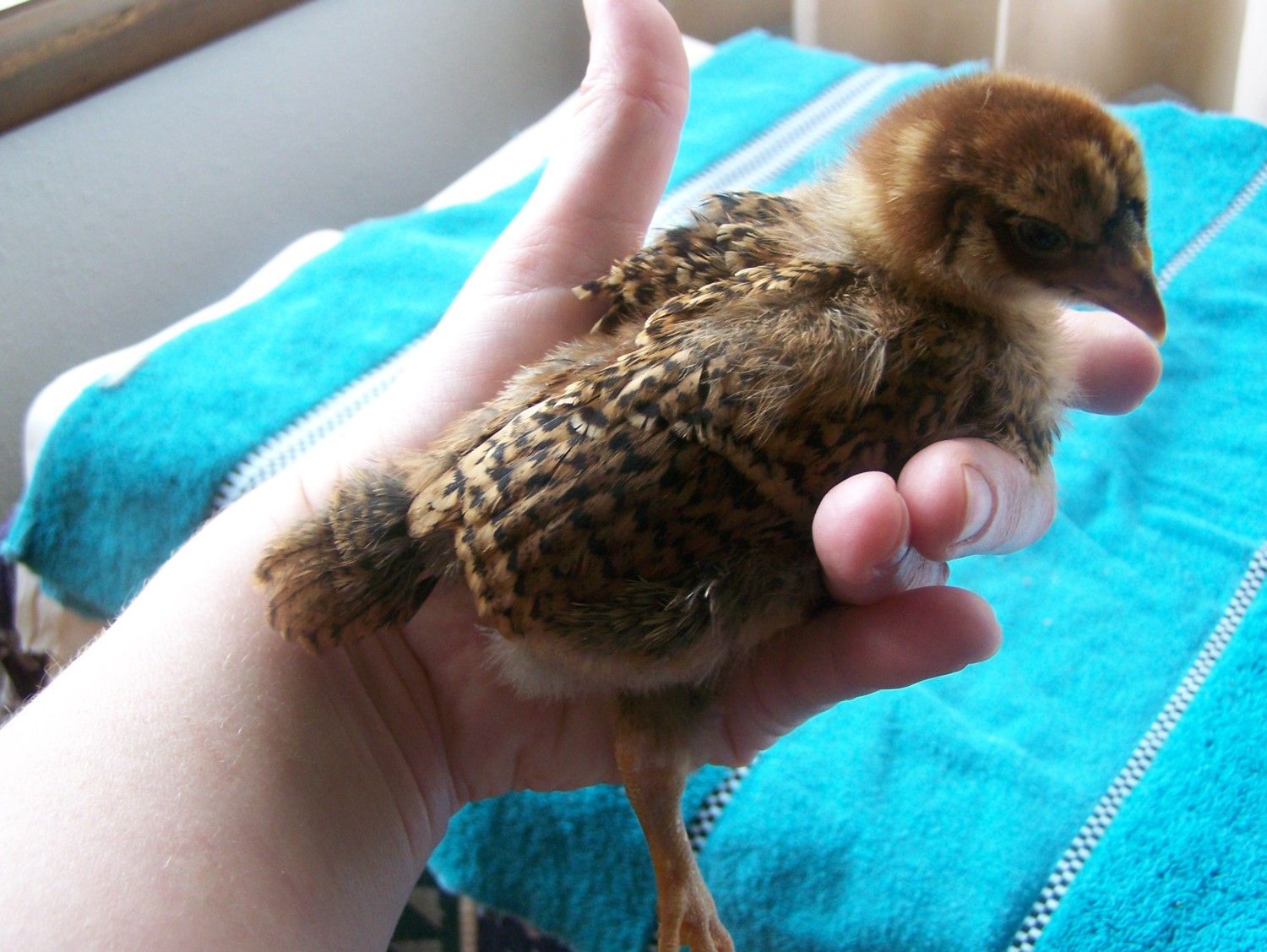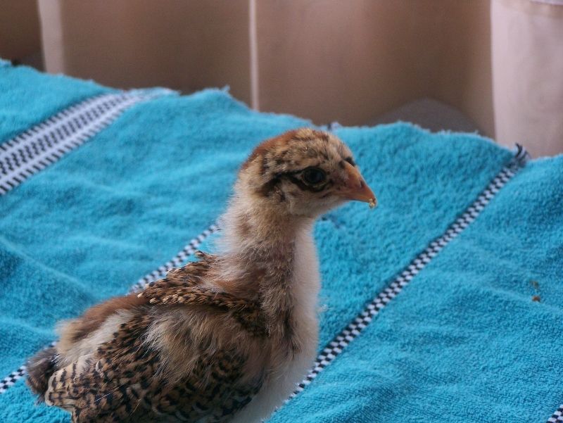 This is Chanty, my friend's daugher named it. This chick is the has the lighter head color of the two.