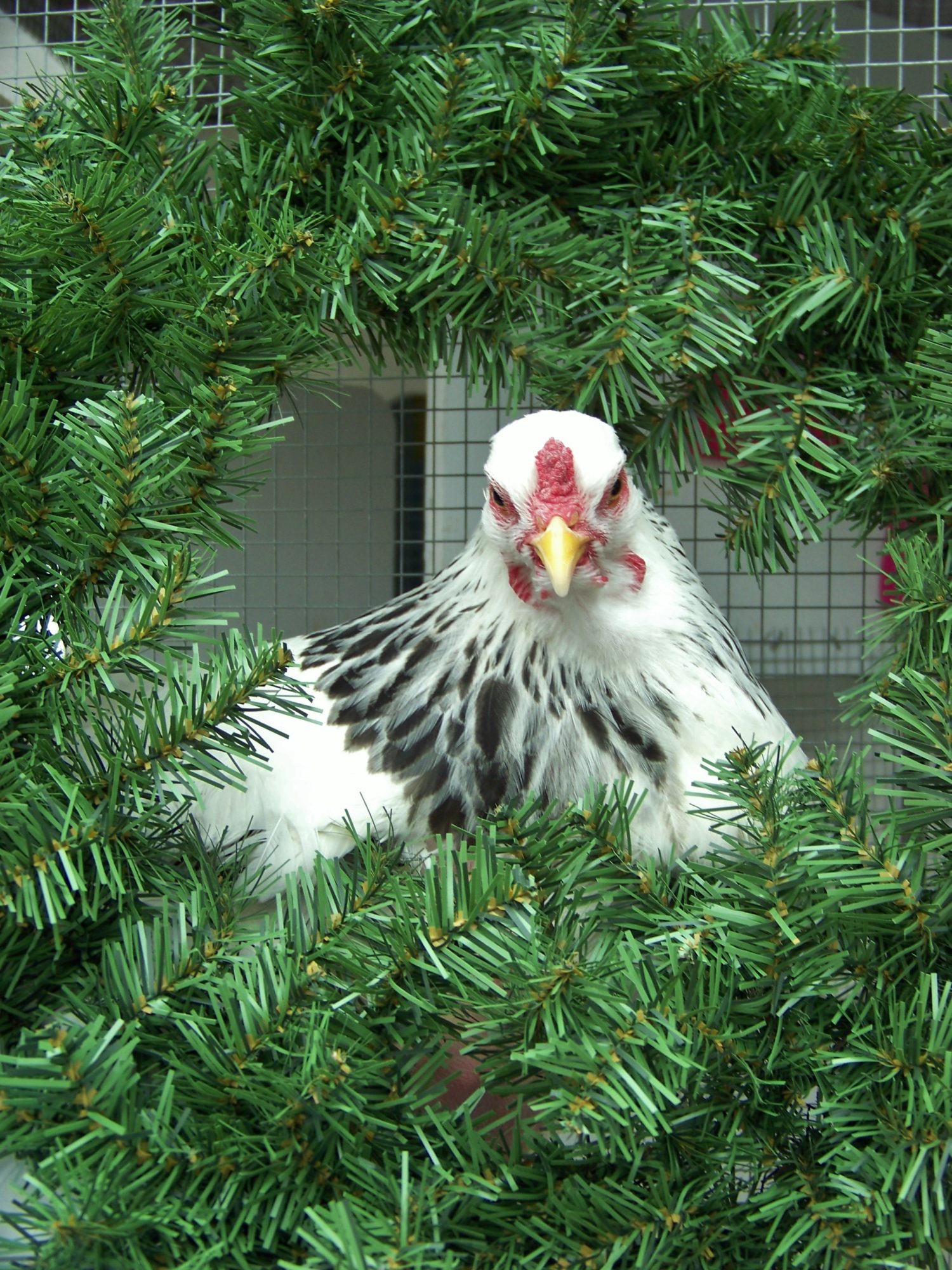 My special chicken is Lady Catherine de Bourgh, or "Kitty." She is best described as the "Sassy lap-chicken." She will lay on her back in my arms and not struggle at all, and she'll have a chat with you when you hold her. That being said, she has no trouble letting the dogs know when they're bothering her. She's been known to peck the muzzle of our 45 and 65 lb. dogs. Yes, she is a nice mix of "chickenalities."