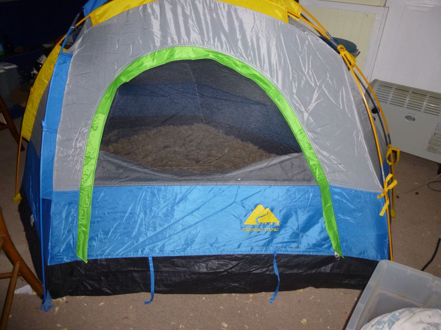There is a sheet in the bottom and pine shavings covering the sheet- when I have to change out the shavings every other day, I just roll up the sheet, dump it in the compost pile, and put the other clean sheet in, put more shavings.