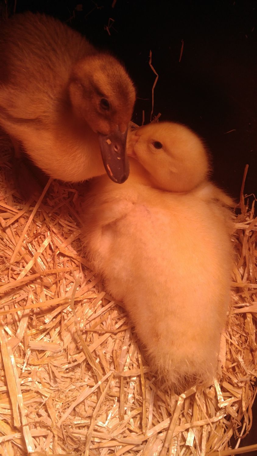 I have two ducklings and one(on the right) is what I thought was a Pekin, but it has these feather poofs on its cheeks. I was wondering anyone knows what those are?