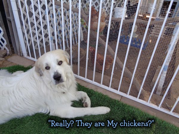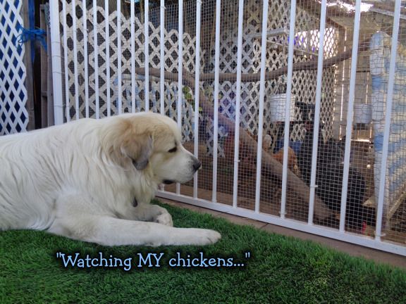 Well, last week I told him "These are Cherokee's chickens. You need to watch them and be nice to them."