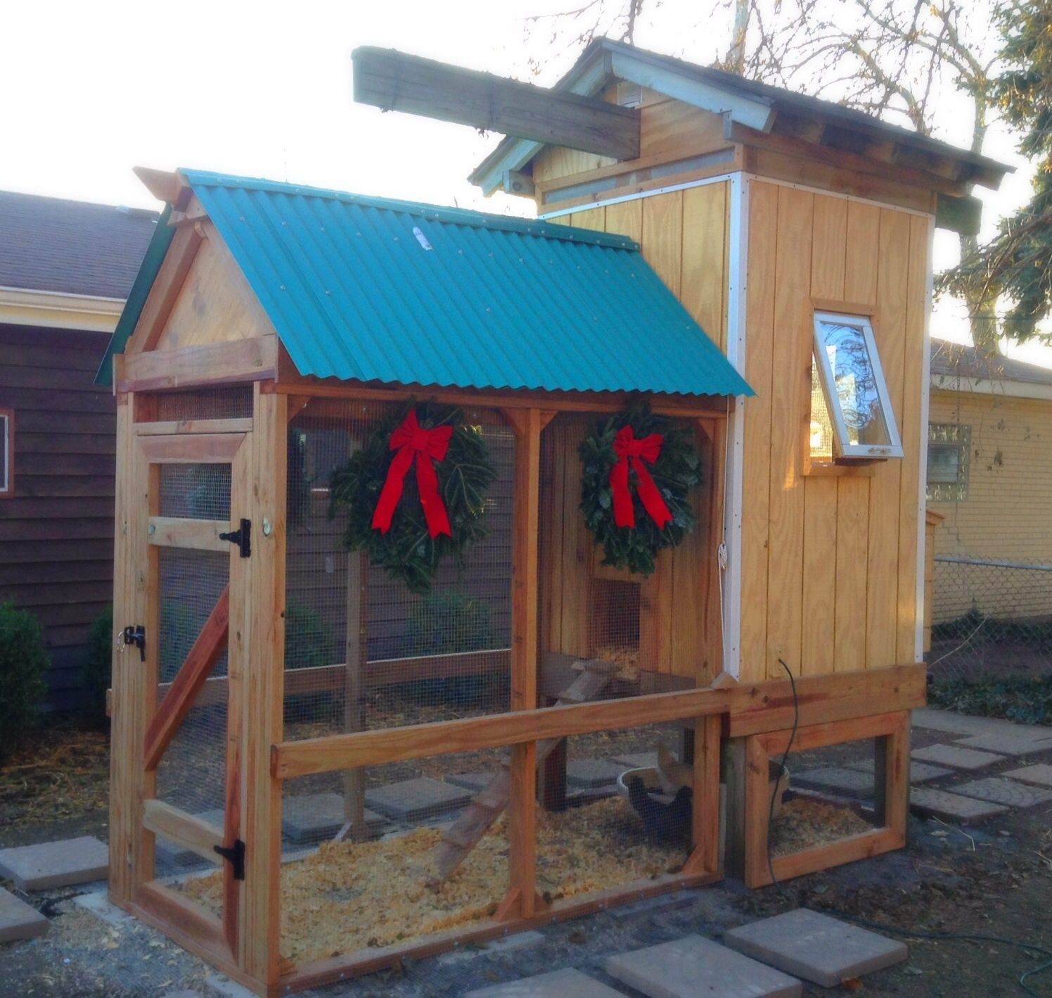 My hubby just finished our coop this past Thanksgiving weekend and thankfully right before the freezing cold we are now getting. I was able to talk him into building our coop from an old play structure that's been sitting in the yard. And yup he had to build the run too, poor guy haha. And yes the cost even though we did repurpose a lot of wood was a lil shocker, but my hubby got obsessed with the project and there was no stopping him- yay for me. Eventually in honor of my hubby's hard work and suffering I plan to post the method to his creation on the coop page.