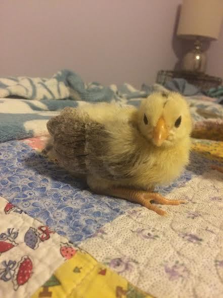 Thank, guys! Between the encouragement here and the progress she's made, I'm feeling pretty optimistic right now (knock on wood). Una has learned to hop (it started out more as half-controlled falling, but it's gotten better). Standing is harder because it requires better balance, but the last couple days she's been standing occasionally for a few seconds at a time. She definitely loves to be held, both Una and Gloria (her sister/roommate) are very people-oriented. Gloria will chirp her head off for no reason at all unless someone comes over to the brooder. I've found that they really like being in a fanny pack padded with a soft washcloth. I guess it feels like they're tucked under their mom!