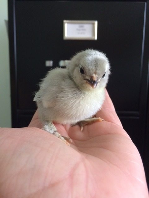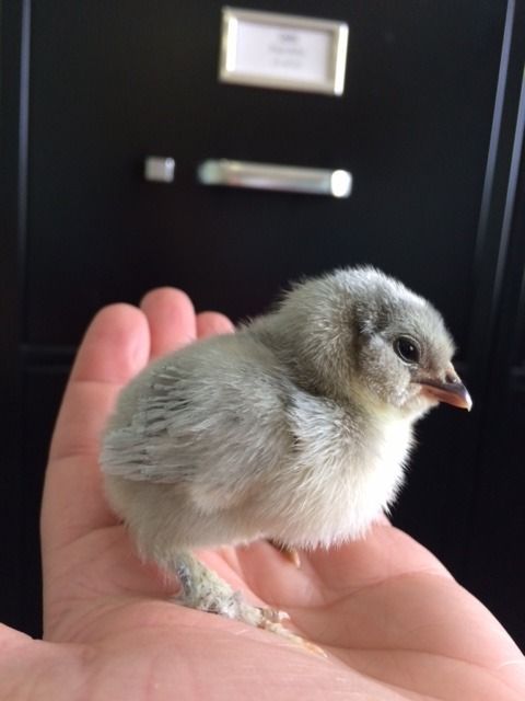 She (wishful thinking) did indeed come from the TSC bantam straight run bin. I'm thinking blue cochin. The wing feathers are definitely coming in with a bluish tint. And I don't see anything on the head which would make me think a crested breed. Although we are looking at a two day old probably.
