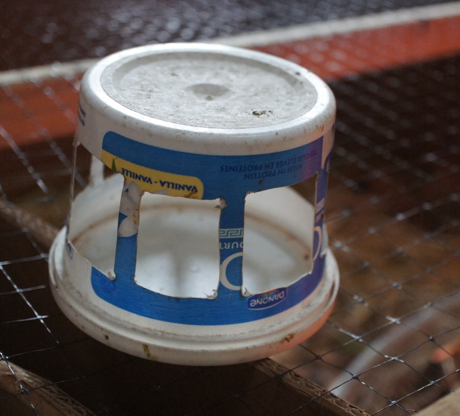 I suspect I'm not the first chicken newbie to look at the stacks of the small jar-top gravity chick feeders at the animal supply store and say, "well, those must work pretty well since they're the only small feeder option." After my first 10 chicks went through several quarts of food in the first couple days I realized why the stores only sell these food-wasting units. Of the many great solutions I found on BYC and other sites (