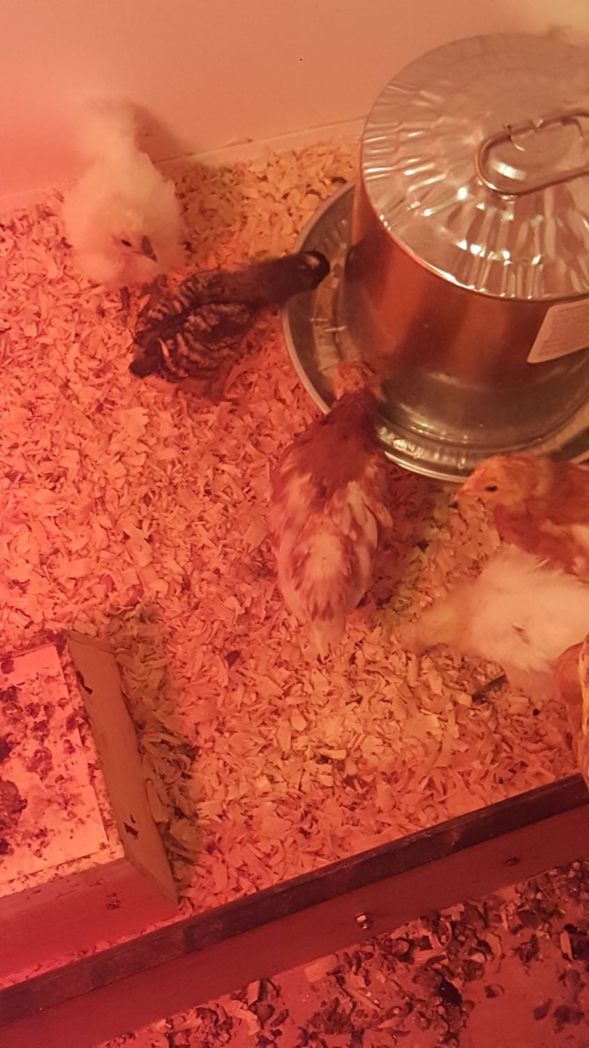 It can't be a silver laced wyandotte, it is way to brown.First photo, looks like a silver laced - Wyandotte - the other photos can't make colors out well - too much red light. I do see silkies. What age are any of these?