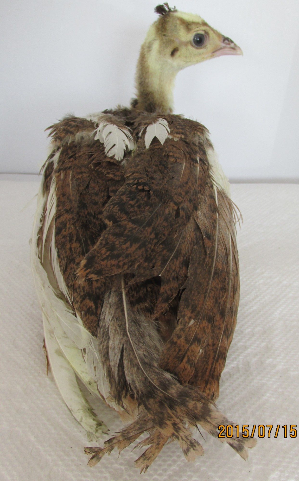 Got a premature train feather from Ice. I'm thinking based on the shape of this feather he's a male. Not that it is an adult train feather but when you look at it and have a train feather next to it the webbing looks similar. I need a tail covert feather from a hen to compare to this feather.